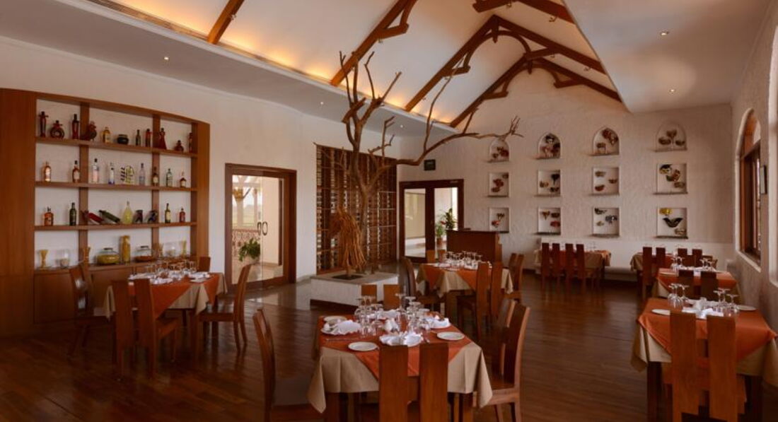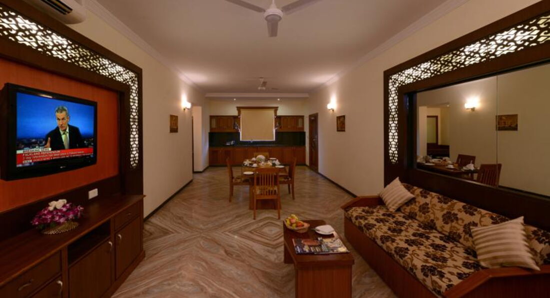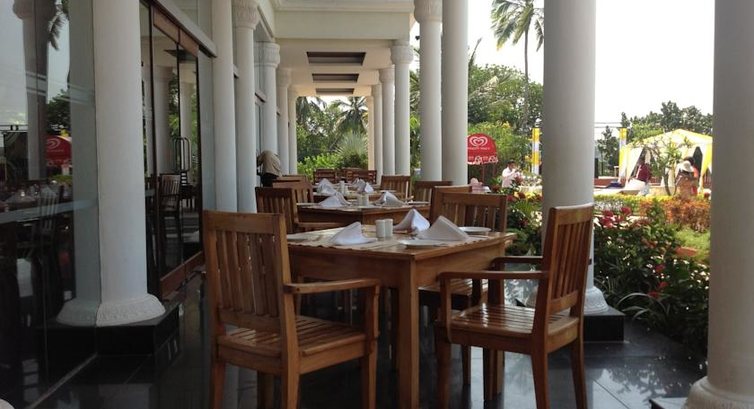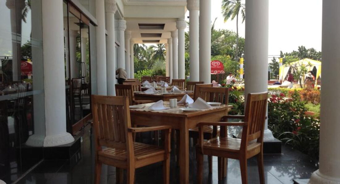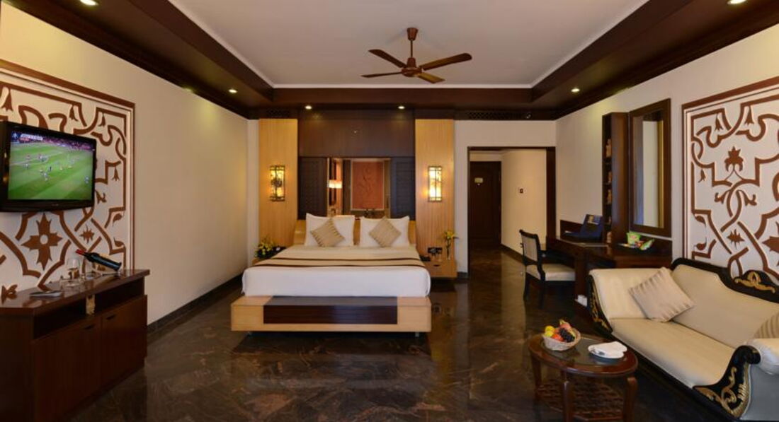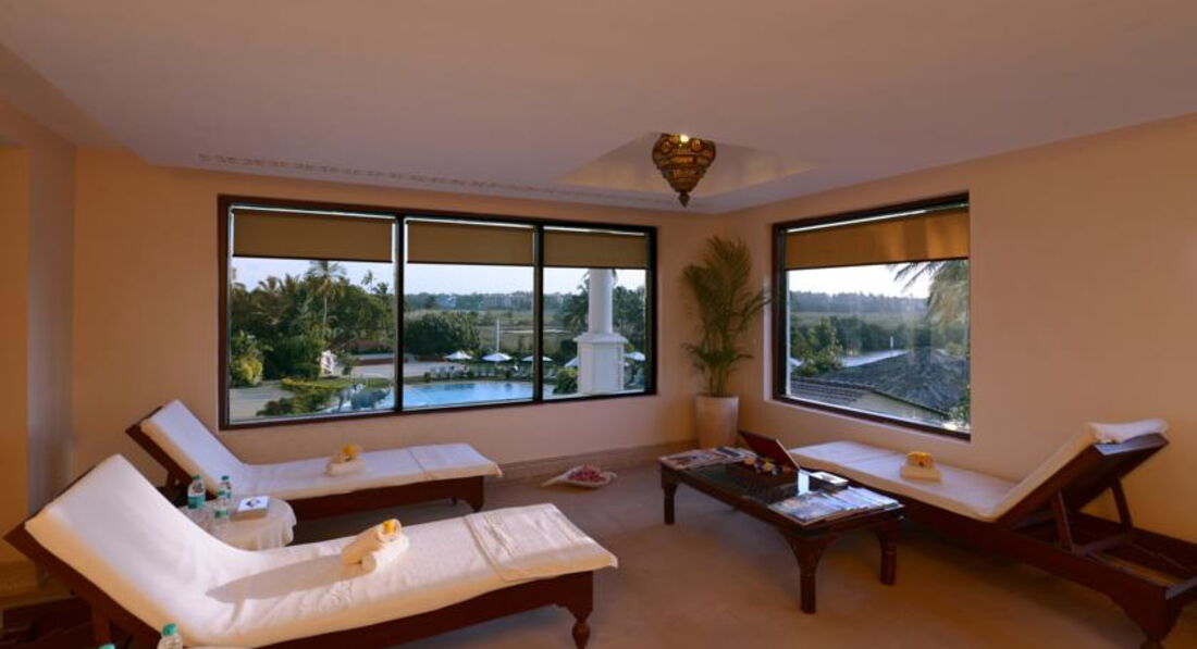 Отель очень понравился! Сервис на высоте. Обслуга просто смотрит в рот, желая угодить, открывают и закрывают перед тобой двери, стемяться исполнить твое желание. У нас было все включено, еда понравилась. Да многоострых блюд, но вы же в Индию едете, надо это понимать. Мясо было и много, курица в разных вариацих, много рыбы и креветок. Сладкий стол просто очуметь, очень вкусно и оформлено как в ресторане очень красиво, мороженое разнообразное и к немудополнительно топпинги и оршки О Очень понравилось, что периодически не было шведского стола и нас кормили по меню как в ресторане. Меню разнообразно, готовили специально для нас, если не понравилось можно было перезаказать что-то другое. Классно! Сидишь, попиваешь ром, а тебя обслуживают. Есть также рестораны аля-карт, по вечерам живая музыка, пели караоке. Номера отличные, у нас был де люкс, очень понравился, большой, кравать удобная, красиво оформлен, в номере чайник, набор для чая, кофе, убирались хорошо. Есть фитнес зал бесплатный, хороший спа-центр. Территория очень зеленая, красивая, бассейны чистые. Да на пляж надо ездить, но это бесплатно если на машине отеля По расписанию три раза в день. Индия страна своеобразная, поэтому каждый сам для себя выбирает, но если решили ехать, то этот отель я рекомендую. Только приятные впечатления!