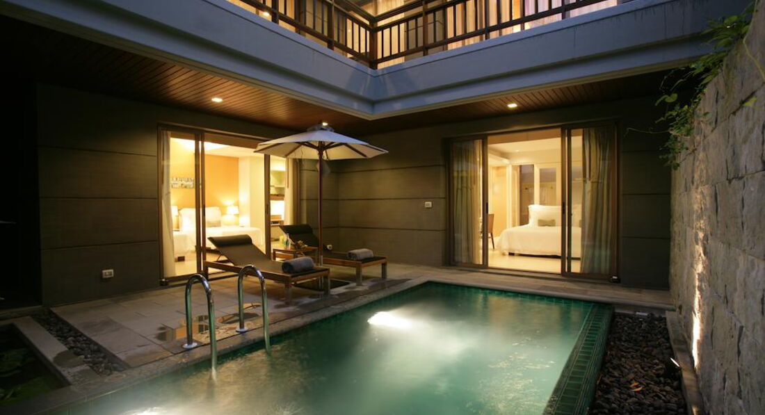 Pool village (65 кв. м): тераса зі спуском у басейн, спільний для гостей 12 номерів, спальня, ванна кімната.