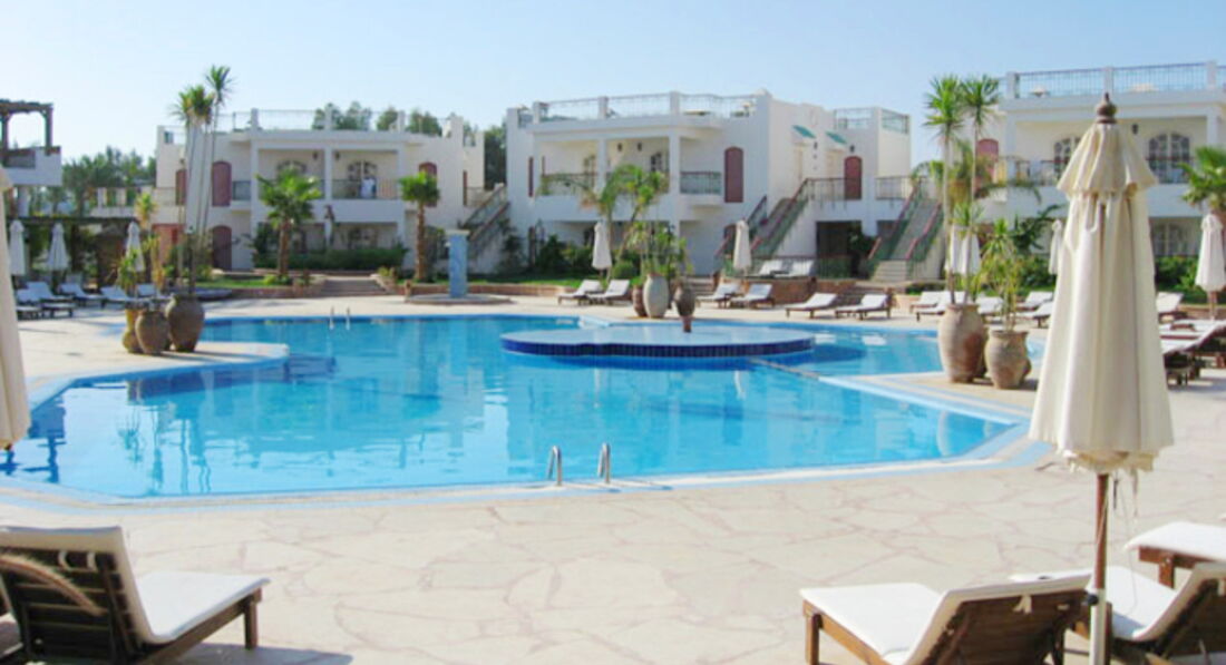 В этот отель попали с подругой в конце октября с.г. по системе "Фортуна". Это район Старого города.Отель претендует больше на твердую 3+, чем на 4. Сказывалась удаленность отеля от моря и других благ, пешком везде далековато, хотя мы были на это настроены, т.к. хотелось пару кг сбросить.На море возил микроавтобус в 8, в 9 утра и в 13-30, забирал с пляжа в 12-00 и в 17-00. Если уехать всем желающим не удавалось, приезжал еще. Возили на бесплатный пляж "Терразина", где и пляж, и вход в море-песок. Пляж нас немного шокировал своей неуютностью. Но мы, приехав утром на наш песчаный пляж, уходили пешком по берегу на дикий пляж, где нет толпы, орущей музыки, но есть максимальное слияние с природой, слушая плеск воды. Там же мы и любовались флорой и фауной Красного моря, опять же променад вместо зарядки в течение 20 минут. Бар на пляже был, но он не принадлежал отелю, поэтому все, что угодно и еда и напитки , но за денежки. На платный пляж (3$)желающие ходили пешком 15 мин. в другую сторону - там красивые кораллы и рыбки. Территория отеля оказалась небольшой, в окружении восьми 2-х этажных корпусов,но уютной,зеленой, ухоженной.Территорию по вечерам часов в 5 и по утрам также в 5 окуривали от комаров и мух, от чего последние вовсе невымирали, как от них того ждали, а всего лишь прятались в номерах , поэтому будет уместно взять с собой фумигатор. Номера простые с пошарпонной мебелью, а главное убирались плохо, приходилось техперсонал вылавливать, чтобы попросить помыть пол, хотя бы, в ванной. У нас постель ни разу за 11 ночей не поменяли, только кровать убирали и крутили лебедей, полотенца, брошенные непредусмотрительно на пол (с целью чтобы поменяли), лежали сутки. Питание нас вполне устраивало: овощные блюда были как и везде в виде различных салатов в достаточном количестве и ассортименте,супчики-пюре иногда тоже радовали вкусом, очень вкусный рис, была любимая нашими туристами картошечка в "мундире" и фри и в виде пюре, колбаски, яйца вареные и в виде омлетов с разными добавками, и глазунья, итальянская паста, рыба несколько раз в разном виде,мясо говядина и куском, и бефстроганов, курочка,индейка подавалась в одну из пятниц очень аппетитная, баклажаны очень вкусно приготовленные и как закуска, и как самостоятельное блюдо, опять же десерт разнообразный, фруктовые коктейли, напитки подавались в стеклянных стаканах, причем долго не приходилось ждать, мальчики шустрили, по утрам вкусный кофе американо со всякими сопутствующими вкусностями - джем, повидло, мед.Пиво действительно вкусное, а вино ни белое, ни красное нам не понравилось. Да, еще забыла, когда прилетели, а это было в 11 вечера, вместо ужина нас ждала большущая корзинка фруктов самых разнообразных, мы ели это дня 2-3. В подобной ситуации на Канарах было гораздо скромнее. Раз в неделю проводят вечернее национальное шоу. Из публики отдыхающих были поляки, немцы, англичане и, конечно же, наши родные русские люди. Но лучше здесь отдыхать все же семейным парам и не с детьми. Обслуживающий персонал был приветлив ко всем постояльцам.Рынок Олд маркет, где продают хороший чай каркаде розочками, ароматный бедуинский чай, Луксорские гранаты от 5-10 египетских фунтов(как сторгуетесь), спелые и очень вкусные манго по 20 ег.фунтов находится недалеко от пляжа бесплатного , поэтому мы успевали к вечернему рейсу автобуса в отель. Вечерами ходили г
