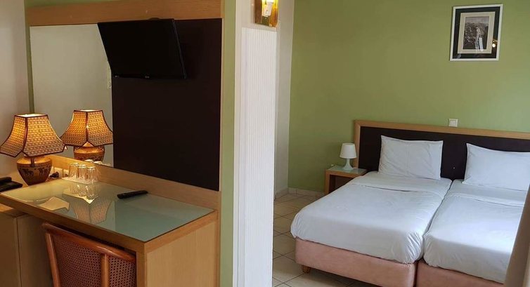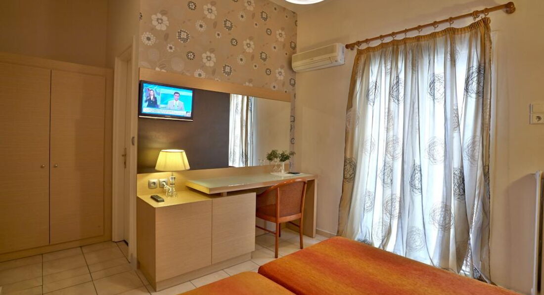 Готель розташований у самому центрі міста, поряд з магазинами та тавернами. Неподалік готелю проходить дорога, що веде до знаменитих скель Метеор, де знаходяться монастирі. Побудований у класичному грецькому стилі. Комфортні номери, ресторан, Roof-garden з баром, обслуговування номерів.