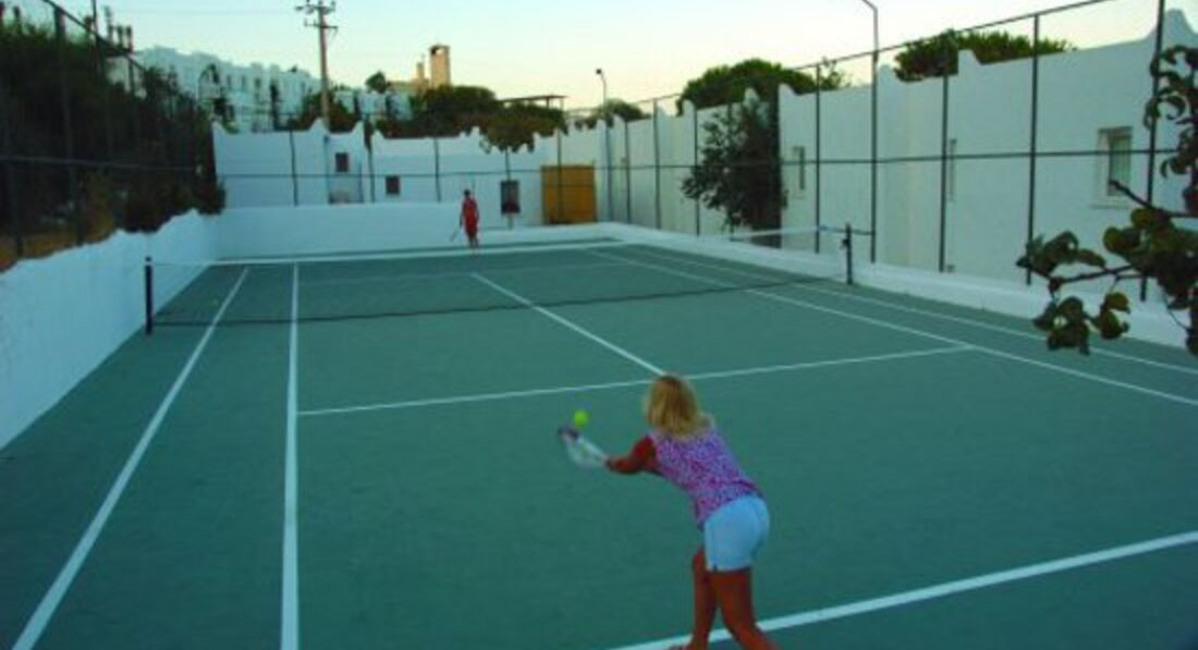Есть теннисный корт. Ракетки (не вау какие) и мячи можно взять у аниматора под залог 20 лир