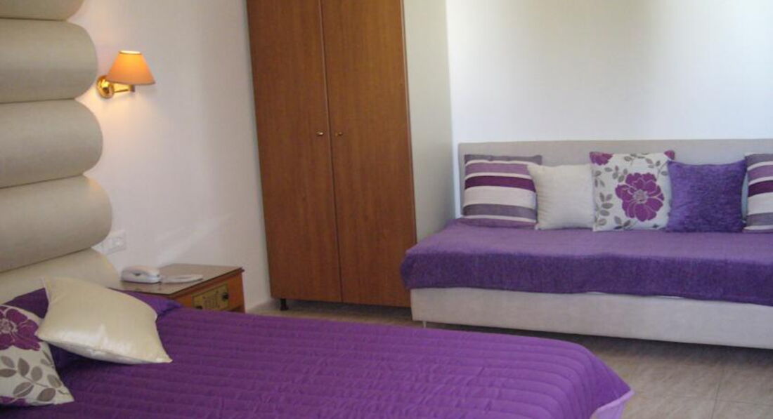 standard room PV/GV (вид на басейн або на сад, осн. ліжко – 2 односпальні, дод. – односпальне, кухонний куточок, макс. 3 чол., 28 м2);