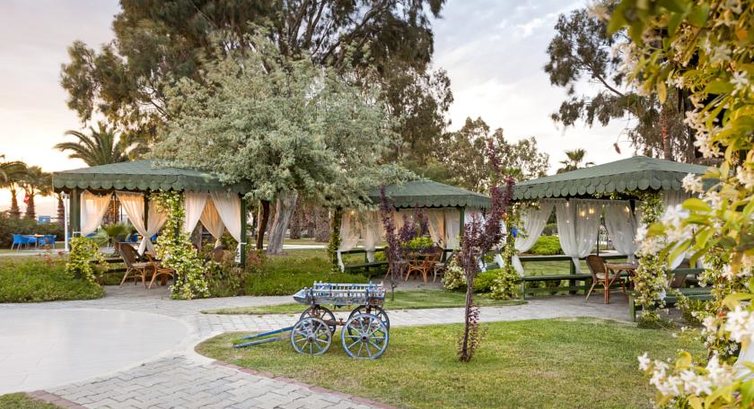Посетил в период с 19 по 29 июня, был я с супругой и трое детей, младшей 11 месяцев. Снимали 2-х комнатный фэмели рум в бунгало С12. Ездили с Тезтур, все вышло в 125 000. Приехали рано утром, но на ресепшен вошли в наше положение и уже к 11 утра дали хороший номер, вид из которого оцените на фото, до пляжа 50 метров. Это третья наша поездка. Если кратко, то отель оправдывает средства на 100%. Я бы его предпочел даже Likya World в Белеке, стоимость отдыха в котором в два раза дороже чем здесь. Больше всего меня поразили две вещи: чистота и отсутствие суеты. В столовой все чисто и опрятно, посуда чистая, скатерти ни когда не остаются на столе на повторное использование, грязная посуда, приборы, салфетки убираются моментально. Персонала много, доброжелательный. Еды достаточно и вкусная, да, присутствует однообразие и повторяемость, как и везде. Народа не много, очередей нет, везде есть места: в столовой; на пляже; у бассейна и т.д. Отель не маленький, но все компактно, много мест развлечений, не плохая анимация, дискотека, живая музыка, бары. Впервые в этом отеле увидел систему борьбы с летучими насекомыми основанной на высоковольтных электродах у неоновых светильников. Подлетая к светильнику комары, мухи убиваются разрядом эл. тока. Я ни одного комара так и не увидел на своем теле или теле своих детей. Весь запас противомоскитных средств так и остался в чемодане. Отель удобно и просто спланирован, везде легко проехать с коляской, не надо плутать, все рядом. Пляж отличный, бассейн не большой, но пойдет, их там 4, есть простенькие аквагорки, рядом есть большой аквацентр, крупнейший в Турции (20 минут пешком). Весь спектр водных развлечений от катамарана, до параплана. Климат отличный, днем 30-33, вечером 22-24. Есть детская комната, СПА, 3 ресторана аля карт, обязательно сходите в ресторан Артимиды (рыбный), там надо доплатить 3 евро с человека, но оно того стоит. Уборочка в номере у нас была не очень, хотя я ни когда не обращаю на нее внимание и пускаю уборщицу не чаше 2-3 раз в неделю. Зато кондиционеры в комнатах не отключаются при выходе из номера, потому в нем всегда прохладно. В номере бесплатный бар (кола, фанта, минералка) пополнение ежедневно. Очень отзывчивый персонал. Очень уютный отель. Я не буду расписывать всего, долго, кого интересуют конкретные вещи - пишите, отвечу. Единственное, что напрягало, это трудные гости, курившие в публичных местах, приходилось регулярно им напоминать, что они не одни. Иногда встречались индивидуумы, дымящие в лица своих детей, но это уже не лечится. Последнее, что хотел бы указать, это разочарование турами Тэзтур. Разочаровали они не только нас, но и всех, кого я встречал в отеле, некоторые даже жалобы писали. Мы ездили в древний город Эфес (обязательно посетите его, но не с Тэзтуром) и в домик св. девы Марии. Мало того, что за 4 часовой тур без обеда я отдал 6000 рублей, так половину этого времени нас катали по магазинам, но самая большая беда не в этом, а в том, что проводит ее весьма странный гид, который мало что знает, очень плохо говорит по русски и вообще имеет проблемы со структурным изложением мысли. Всем удачного отдыха.