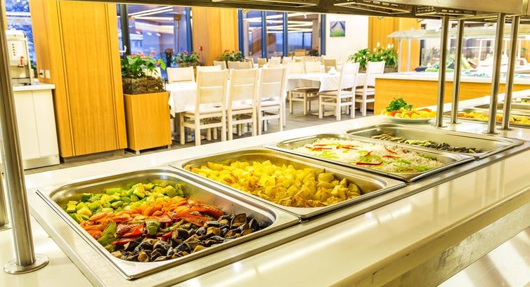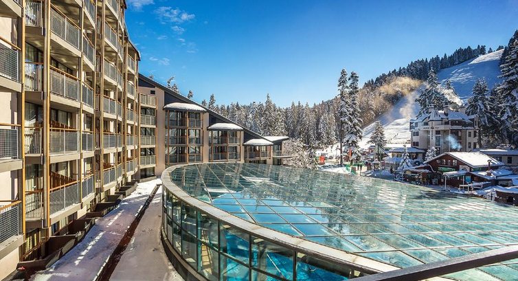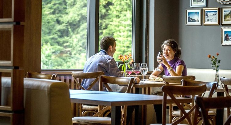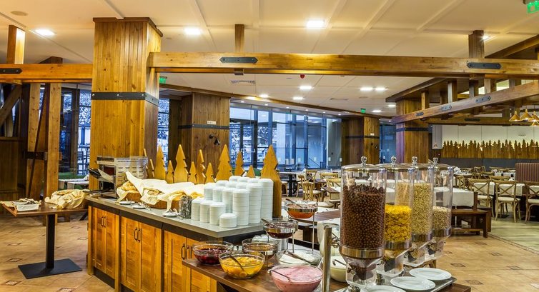 • у готелі є 2 ресторани на 420 та 260 посадочних місць, обидва оформлені в сучасному альпійському стилі