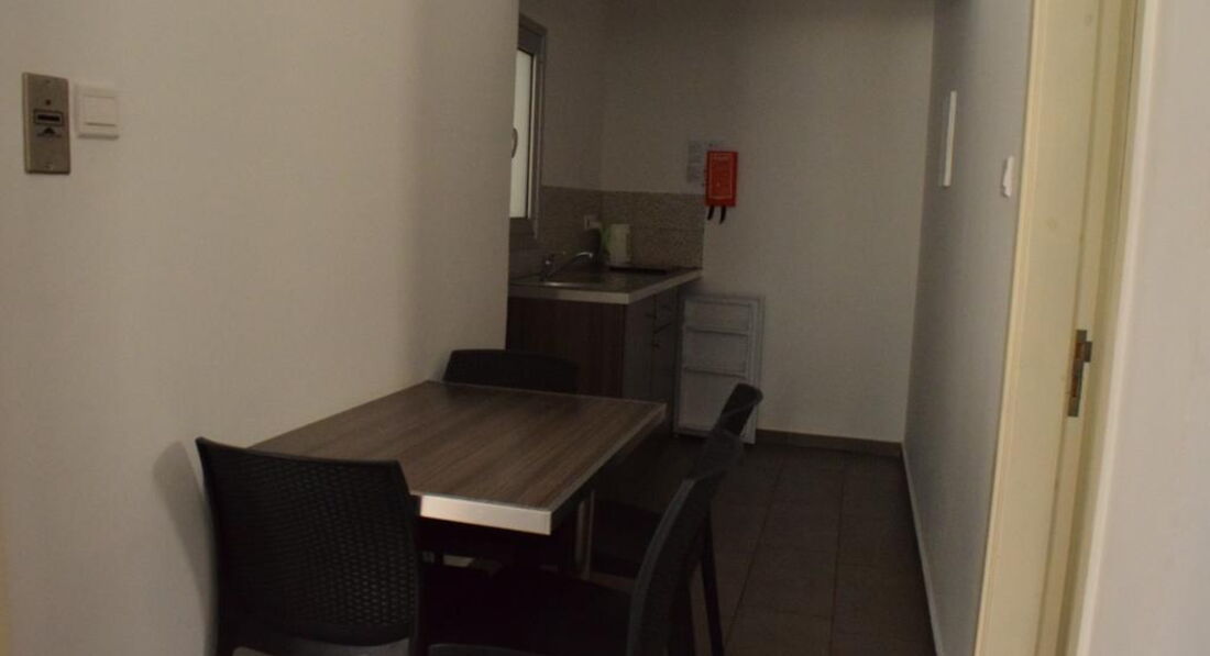 •кухонний куточок (чайник, електрична плита з однією конфоркою, обідній стіл)