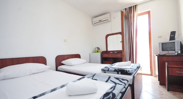 Trpl: 22м2, тераса 9м2, тримісний номер з кондиціонером, електричним чайником та холодильником. Власна ванна кімната має душ.