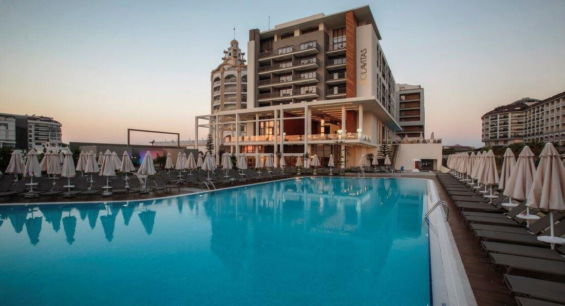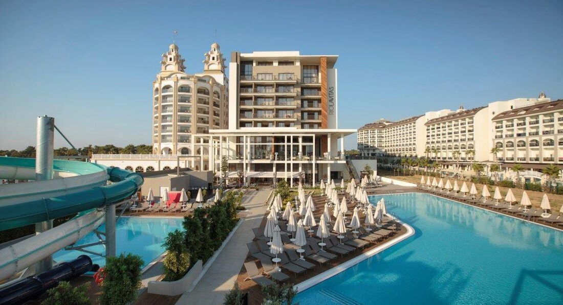 Територія та послуги: • відкритий басейн, 420 кв. • релакс-басейн, 400 кв.м (з лежаками 200 кв.м) • басейн з трьома гірками, 140 кв. • критий басейн 150 кв.м., джакузі 15 кв.м. • основний ресторан • 4 A'la Carte ресторану: італійський, інтернаціональний та турецький, морепродукти, кебаб-хаус • 6 барів • 1 конференц-зал на 700 осіб. • амфітеатр • ТВ-салон • бізнес центр • обмін валюти • Wi-Fi (безкоштовно, на території) • пральня • медичні послуги • велопрокат (безкоштовно) • послуги фотографа • оренда автомобіля Розваги та спорт: • софт-анімація російською мовою • турецька ніч (1 раз на тиждень) • жива музика (2 рази на тиждень) • турецька лазня, сауна, парна • тренажерний зал • фітнес центр дискотека (крита) • дартс, бочча • настільний теніс • міні-футбол • аеробіка, йога • волейбол, пляжний волейбол • SPA-центр платно • масаж платно • салон краси, перукарня платно • комп'ютерні ігри платно • ігровий зал платно • центр підводного плавання платно • всі види водного спорту на пляжі платно Для дітей: • дитяча анімація, міні-диско • міні-клуб (4-11 років) • дитячий майданчик, ігрова кімната • пісочниця на пляжі • відкритий дитячий басейн, 45 кв. • критий дитячий басейн, 12 кв. • дитячий буфет (обід) • дитячі стільці у головному ресторані • няня, коляска (платно, по резервації) Живлення: • UAI – все включено У концепцію входить: сніданок, пізній сніданок, обід та вечеря - шведський стіл, закуски-солодкості та морозиво у певні години, пізня вечеря, дієтичний, вегетаріанський та безглютеновий буфет, цілодобово деякі імпортні та місцеві алкогольні та безалкогольні напої. Імпортні преміум напої та коктейлі, шампанське, святковий торт, напої в пляшках, свіжий апельсиновий сік - платно. У день виїзду, після 12.00, їжа та напої – платно. A'la Carte ресторани: італійська, інтернаціональна та турецька - протягом проживання по одному разу безкоштовно (за попередньою резервацією). Ресторани морепродукти та кебаб хаус – платно. Пляж: Власний піщаний пляж знаходиться за 300 м від готелю, через дорогу, по підземному переходу. Курсує шатл на пляж, у певний годинник, безкоштовно. Шезлонги, парасольки, пляжні рушники – безкоштовно. Захід у море – пісок. Бар на пляжі, душ, кабінка для перевдягання, рятувальник. До оплати приймаються кредитні картки: Visa, Mastercard.