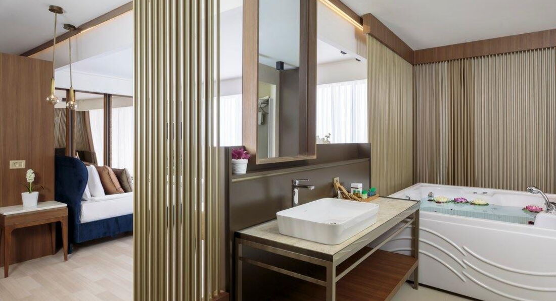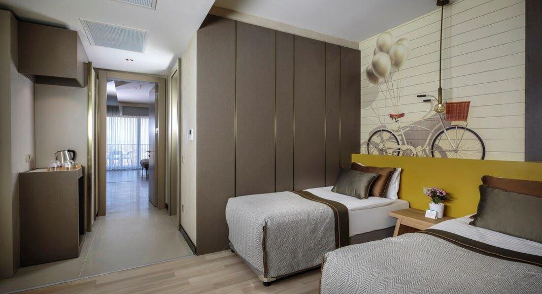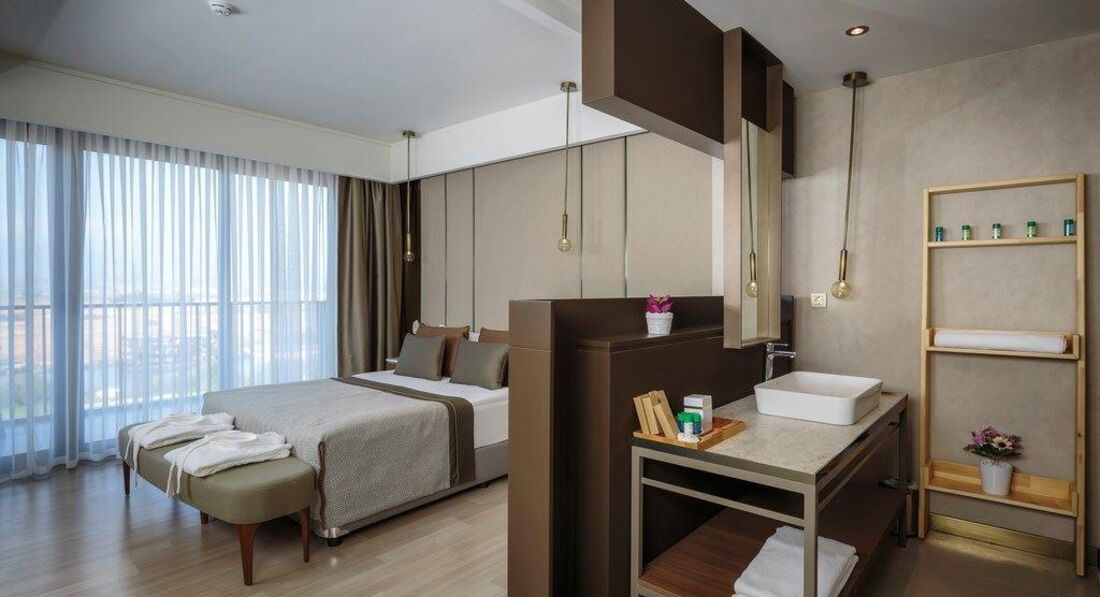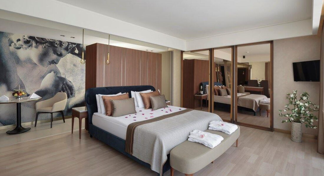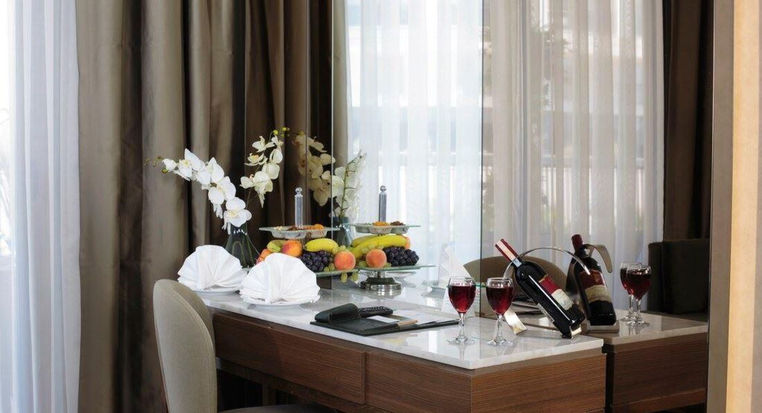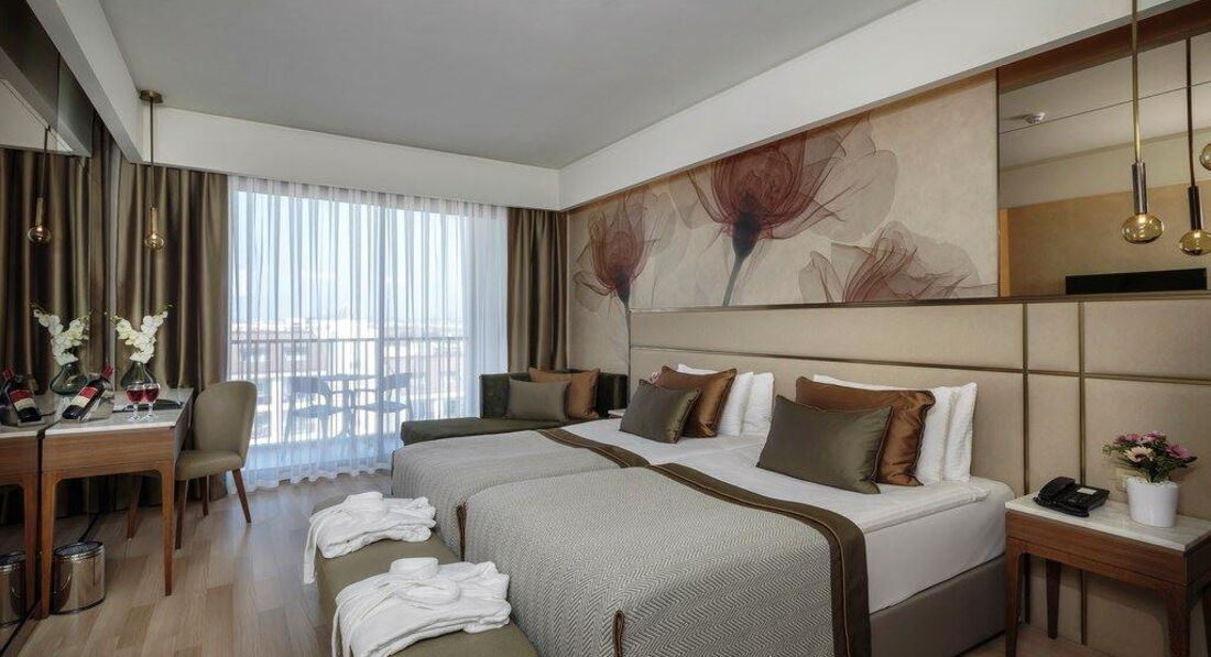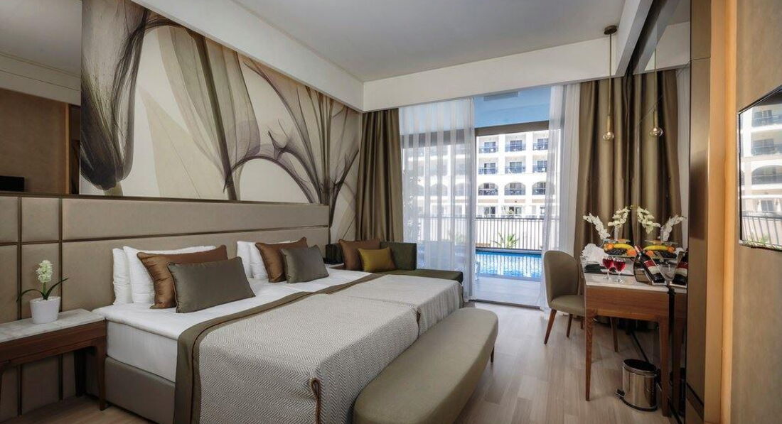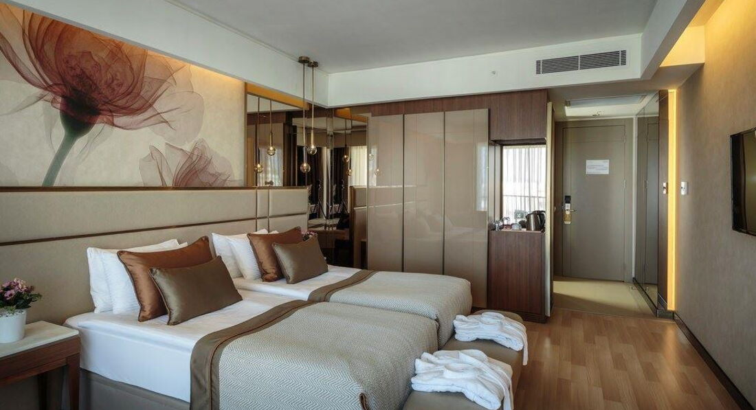 Типи номерів: • 299 Standart Room – площа номера 35 кв.м, максимальне розміщення 2+1, 3 чол. • Economy Room – обладнані як Стандарт, але з видом на сусідню будівлю • 36 Family Room - площа номера 55 кв.м, 2-кімнатний номер з дверима, 2 ванні кімнати, 2 ТБ, макс. 4 чол. • 2 Honeymoon Suite – площа номера 115 кв.м, номер для молодят, однокімнатний номер, 1 ТБ, 1 ванна кімната, джакузі, макс. 2 чол. • 10 Swip-up Room – площа номера 35 квв.м, однокімнатний номер, макс. 3 чол. • 2 Deluxe Suitе – площа номера 140 кв.м, 2-поверховий 2-кімнатний номер з дверима, 2 ванні кімнати, макс. 4 чол. • 3 Handicap Room – номери для осіб з обмеженими фізичними можливостями.У номері: • центральний кондиціонер • міні-бар (прохолодні напої – щоденне поповнення) • супутникове ТБ із російським каналом • прямий телефон • інтернет • душ • фен • сейф (платно) • балкон • додаткове ліжко (за запитом) • покриття для підлоги: ламінат • прибирання номера: щоденно • зміна білизни: 3 рази на тиждень • зміна рушників: щодня • додатковий сервіс номерів • для молодят: у день заїзду вино та фрукти; халати та капці; VIP банне приладдя