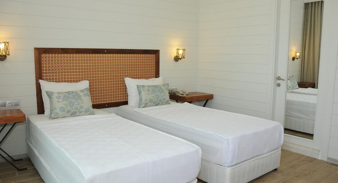 • 50 стандартних номерів, обладнаних двоспальним або 2 односпальними ліжками у спальній кімнаті. Частина номерів з видом на море