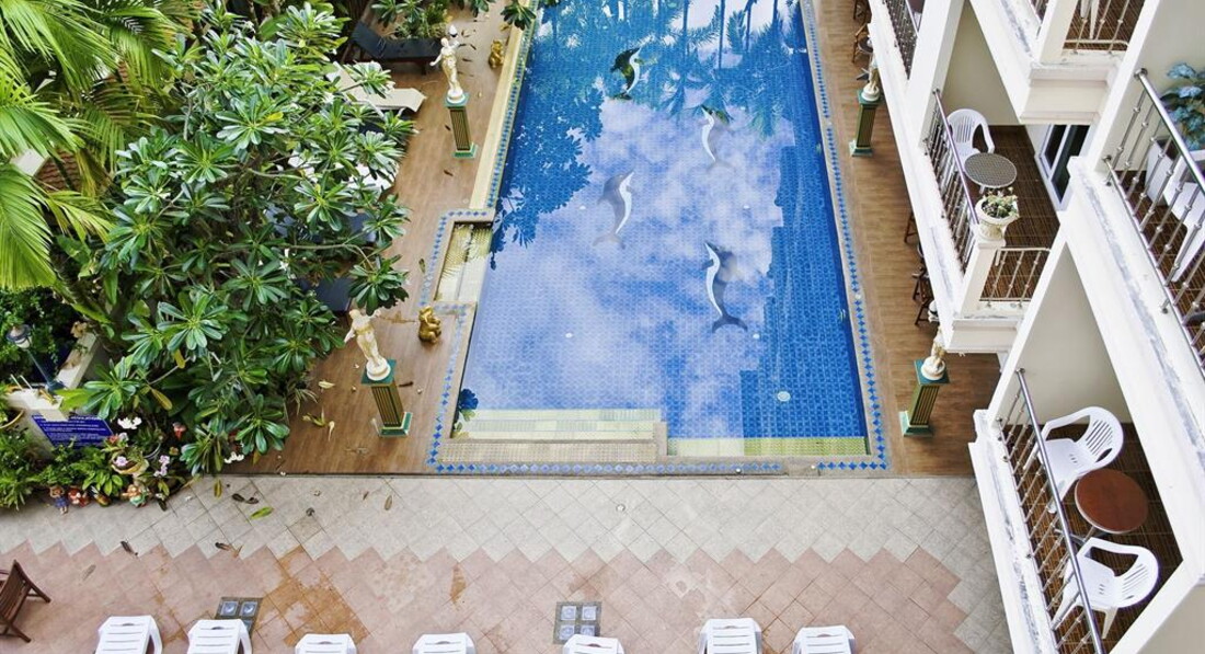 Отдыхали с мужем в Паттайе в восьмой раз. Отель выбирали по рейтингам: вроде высокий, фото симпатичные, недалеко от пирса и центра. Но какое неудачное место! Чтоб добраться куда то надо пройти между помоек и под мостами, с горки- на горку! Туки проезжают битком от Паттайя парка. Прогуляться негде! Внутренний дворик отеля давит. Отель обслуживает русских и китайцев. Наши, как всегда, большими громкими компаниями пьют ром на бассейне до утра...Завтраки очень скудные и однообразные. Поставила 4 за размещение, поскольку мы приехали одни и нас быстро обслужили. 4 за сервис - потому что комнату убирали нормально, но коридор и лестницу мыли всего 1 раз за 18 дней! Заметно это было по ярким ежедневно постоянным пятнам от ягод на плитке. Грустно....