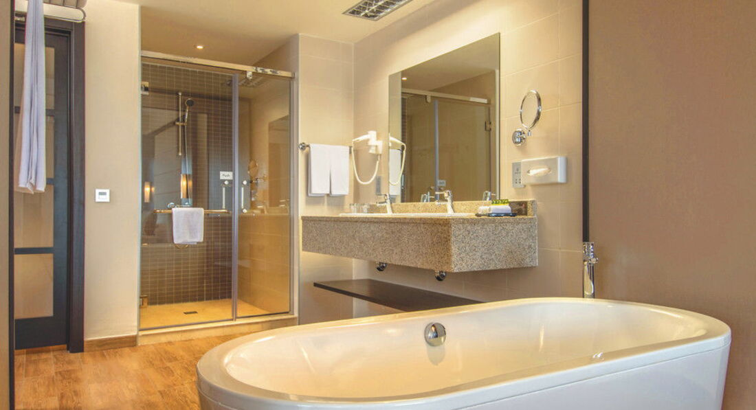 действительно нет тапочек ,халатов и мыльных принадлежностей свойственных для 5зв отелей , налили банку мыла жидкого в душе на все случаи жизни ,нет биде ,уверен ,что шланг со слабой подачей воды рядом с унитазом не заменит качественное биде .