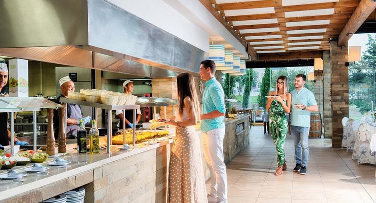 • головний ресторан з терасою — у головному ресторані на вас чекають сніданки, обіди та вечері типу «шведський стіл» з кулінарними шоу