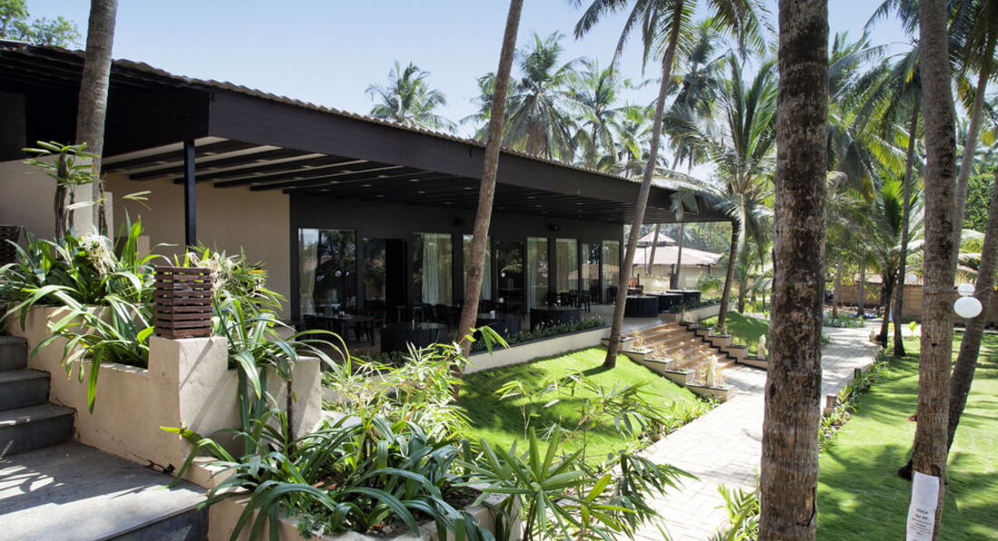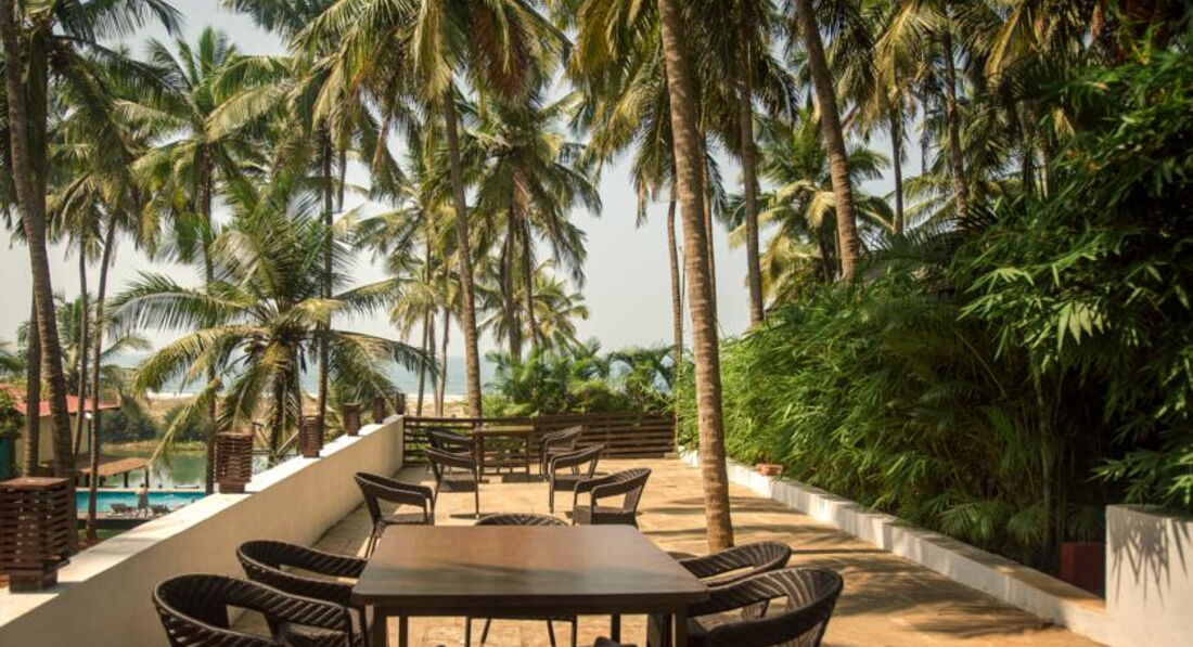 28.02-09.03 мы проживали в данном отеле. После 6 часового перелета нам еще около 1.5 часов пришлось путешествовать на автобусе типа ПАЗик до отеле. Данный отель самый удаленный от аэропорта. Заселение было моментальное, но у нас попросили на некоторое время паспорта для ксерокопирования. Страшного не произошло. Номер(мы проживали в отдельном домике) оказался вполне милым. В номере были замечаны: сейф с кодовым замком, жк-телевизор 32 дюйма, чайный набор на 2 персоны, кондей, холодильник(мы узнали,что должен быть в номере под самый конец), письменный стол,стулья и т.д. Ванная комната приемлемая. Но горячая вода включается кнопкой, которую трудно вычислить.Размеры домика приятно удивили,но больше всего удивил вид из окна. Он просто прекрасен(из всех домиков на море). Домики стоят в пальмовой роще,мы видели пальму с порядковым номером 109, на берегу. От пляжа отделяет только маленький променад. Широченная пляжная линия. Очень чистый и малолюдный пляж, но если немного пройти в сторону, то окажетесь в Арамболе, где огромное количество шейков и русских. В другой стороне от отеля поселок поменьше,но и в нем есть пара магазинов, нормальный массажный салончик и можно обменять деньги по хорошему курсу(в отеле ужасный курс. Меняли по 50 рупий за доллар, когда хорошим считался 54). В Отеле очень дорогой ресторан. Чаевые составляют 10% и включены в счет. Кормят однообразно. Брать ужины и завтраки я не советую. Рядом много шейков с нормальными ценами(например People), а в Арамболе сможете ужинать СВЕЖИМИ морскими гадами по бросовым ценам. Массажный салон в отеле завышает цены примерно в 2-2.5 раза. Например Широдара(не уверен с написанием) у них стоит 2800 рупий, а в массажном салоне можно договориться на 1000 рупий. В отеле 2 сети Wi-fi. Обе бесплатные, но одна с паролем,а другая без. Пароль можно узнать лобби. Большой скорости не ждите, но родне написать и соц.сети проверить можно. Около отеля стоянка такси. Из таксистов советую иметь дело с Vitalom. С ним можно нормально торговаться. От отеля до рынка в Мапусе и обратно+3 часа ожидания стоит 1000 рупий. Ночной рынок с ожиданием 1200 рупий, а поездка на водопады+ специи и слоники 2800 рупий. До Арамболя просят 200 рупий, можно сговориться на 150 рупий или поймать попутку за 100. Пешком по пляжу до Арамболя идти 20 минут.