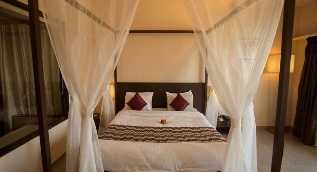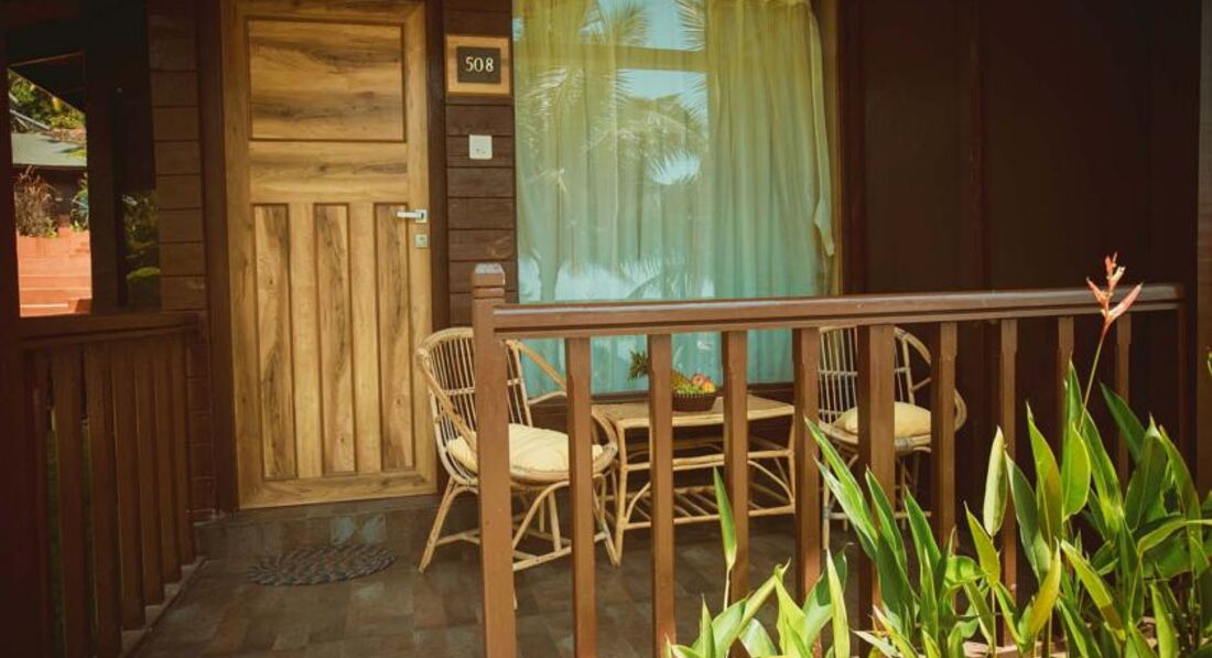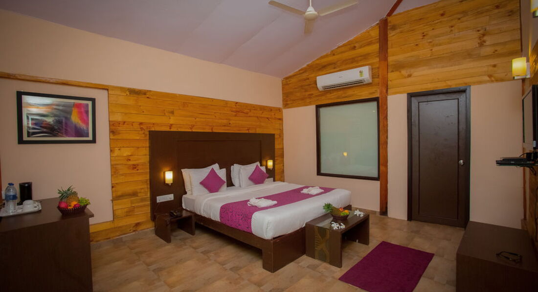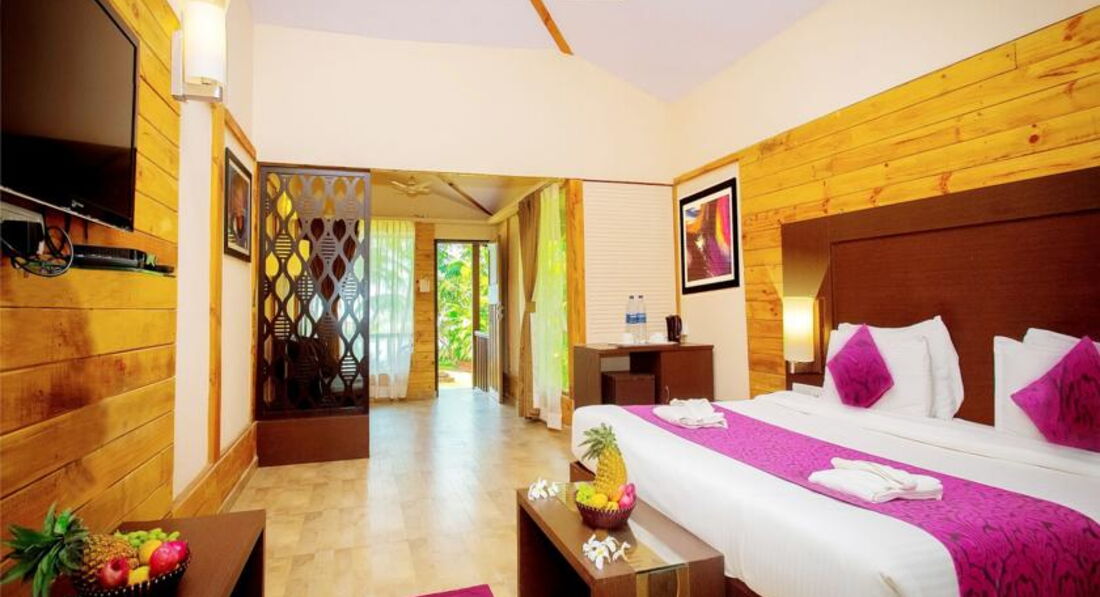 Номера просторные, выполнены в деревянном стиле. Есть вентилятор и кондиционер, TV - плазма, минибар. WiFi бесплатно. Дополнительное место -матрас. Территория отеля зеленая, красивая, небольшая. Пляж в двух минутах. Территория отеля выходит на пляж. Номера делюкс с видом на море. Советую этот отель тем, кто хочет остановиться на севере Гоа.