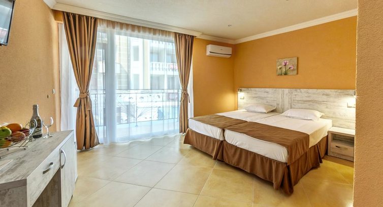 Розташування: курорт Сонячний берег, біля центральної вулиці за 400 м від пляжу, найближчий аеропорт Бургас.