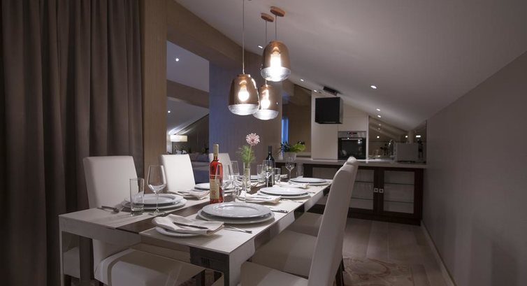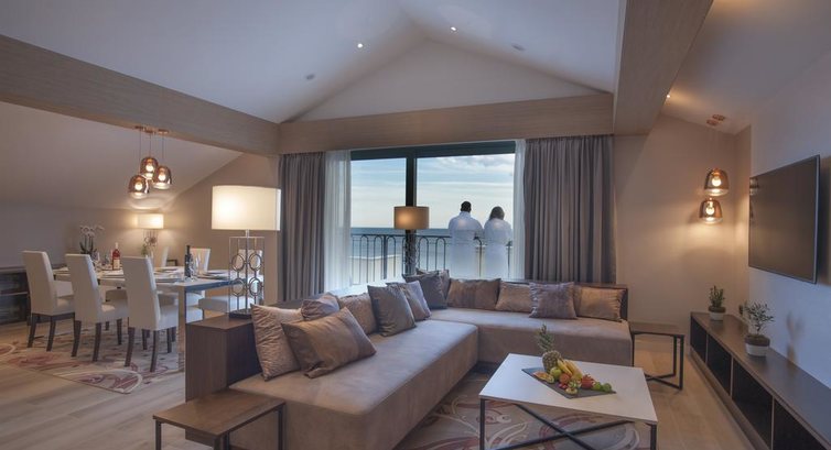 • Deluxe Apartment (близько 160 кв.м; апартаменти з видом на море, що складаються з двох спалень і вітальні, без міжкімнатних дверей; є кухня, тераса 30 кв.м, макс. 3 дор. або 2 дор.+2 дітей)