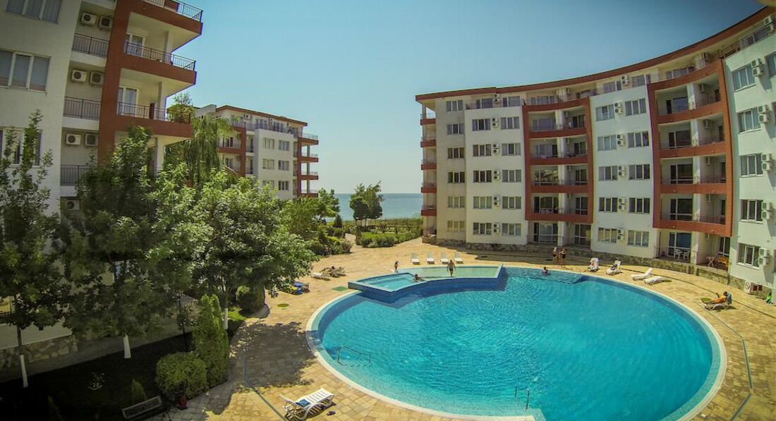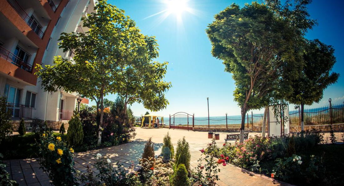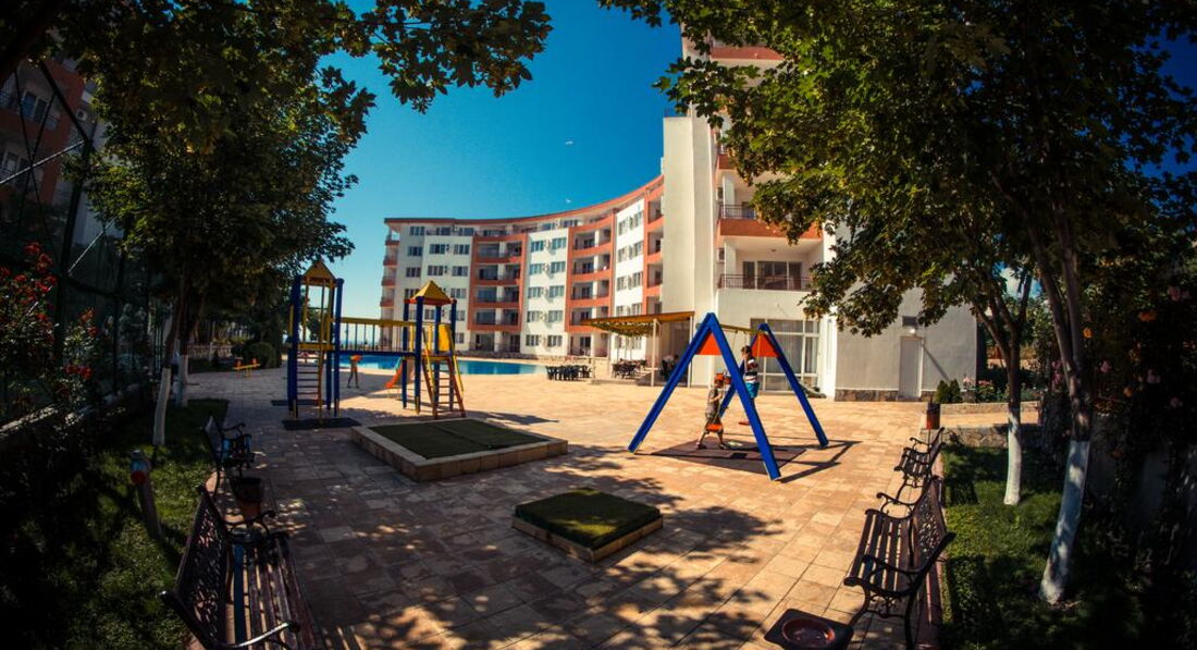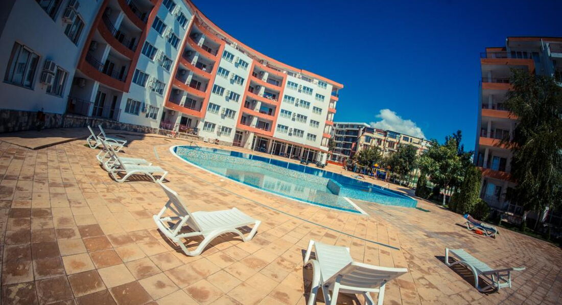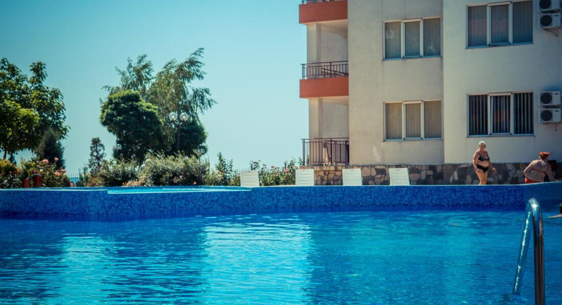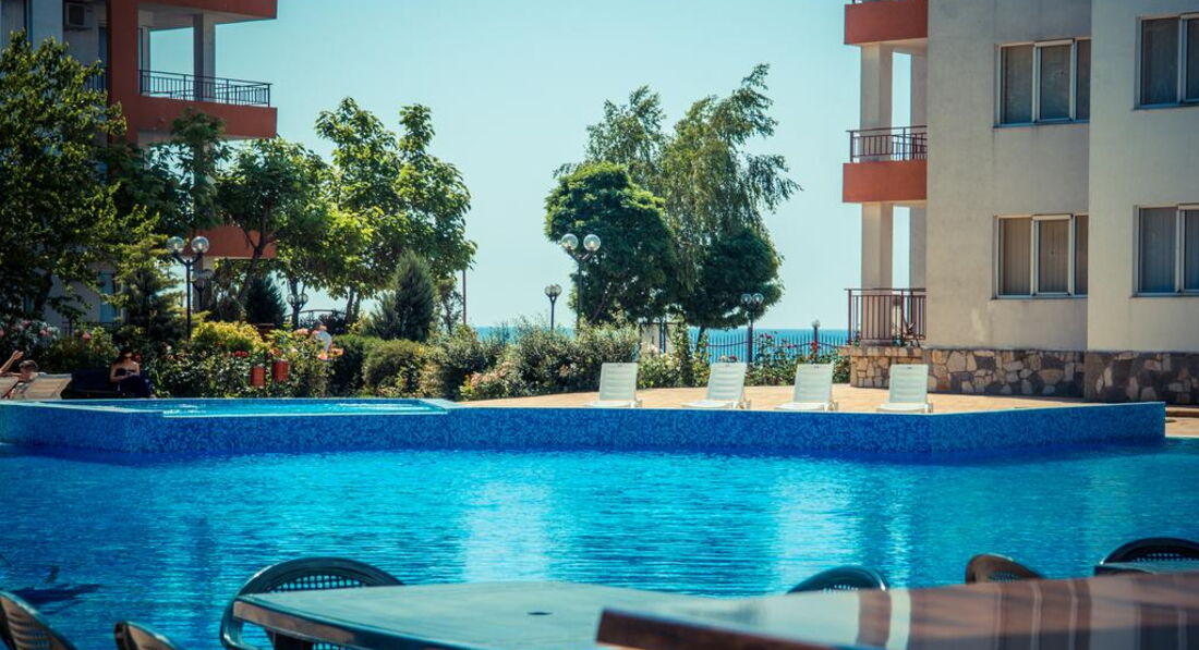 Здравствуйте, мы отдыхали двумя семьями с детьми 3 лет в августе.Поездка была спланирована с ограниченным бюджетом, поэтому ждали худшего от отеля, но отдых удался.Были забронированы 2 студии,все необходимое есть,даже утюг с гладильной доской,нет фена,стиральной машины (в более больших номерах стиралка есть), пляжных полотенец.Лежаки только на территории бесплатно, на пляже ничего нет, пляж переполнен, но море на момент заезда было чистое и теплое.Бассейн холодный, не купались.В Равде много аттракционов для детей, вечерами есть чем себя занять.Территория ухоженая и безопасная, закрывается магнитным ключом.Цены в ресторане при отеле большие, еда так себе, много ресторанов недалеко от отеля, где все дешевле и вкуснее.Вообщем для отдыха с детьми по умеренным ценам просто отлично! В след.году планируем снова посетить этот отель.Надо только не ждать чудес за эти деньги и самый большой минус, я бы все-таки выделила пляж!