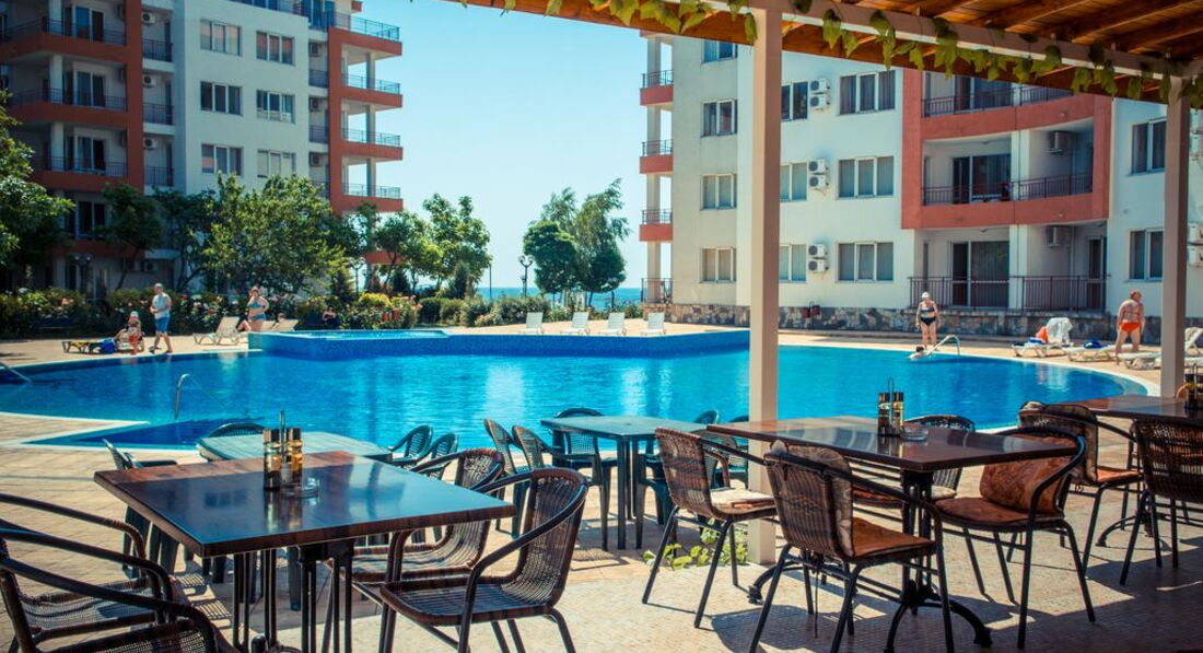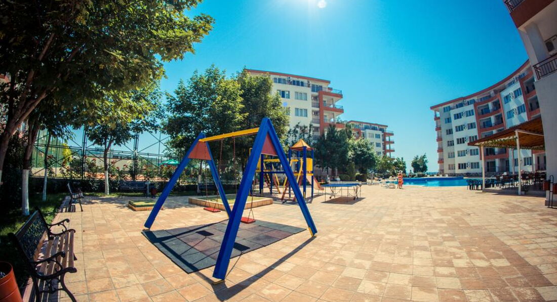 с нашей стороны (куда выходили апартаменты, в частности окна спальни) в этом году открвлся детский летний лагерь. А что кроме шума ожидать от подростков 12-17 лет, поэтому каждый день находясь в номере можно было слушать радостные вопли отдыхающих болгарских детей (до 29.08 включительно). + вечерние ежедневные диско с 21.30 до 23.30 (по закону у них тихий час с 24.00 по 8.00), Ребенок засыпает по расписанию рано, поэтому переживали за его спокойный сон, но он славо богу не был нарушен. При обращении к руководству лагеря по поводу переноса увеселительных мероприятий на более раннее время получил отказ. При обращении к менеджеру комплекса тоже самое (мол ничего сделать не могу).
