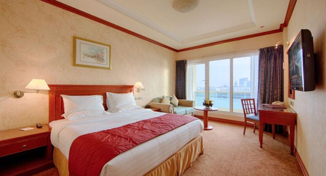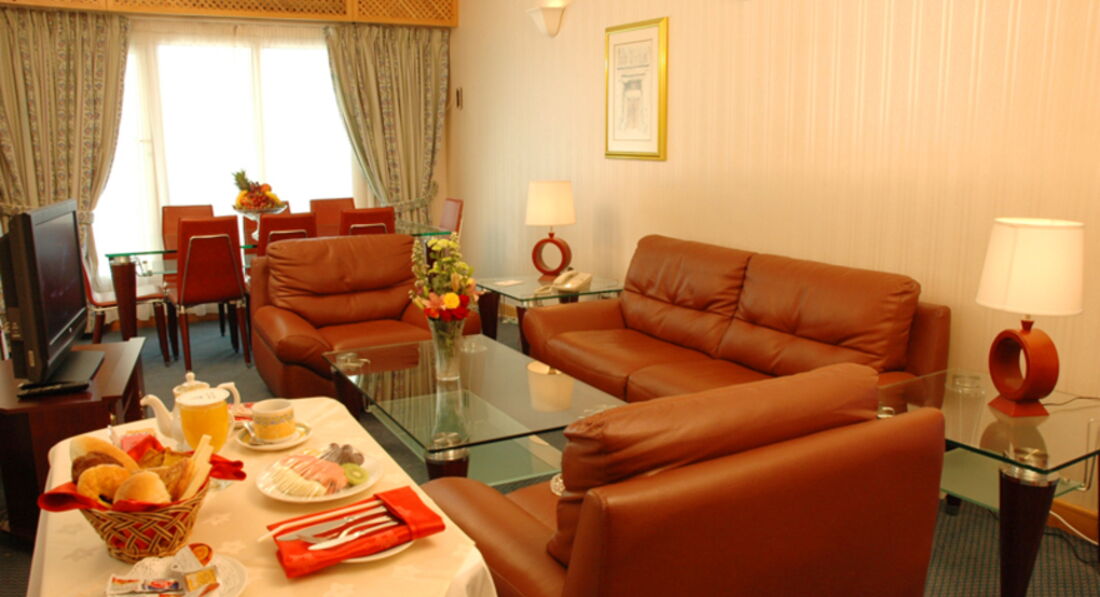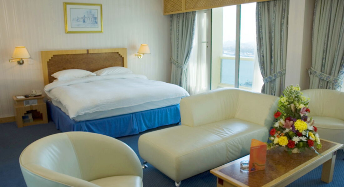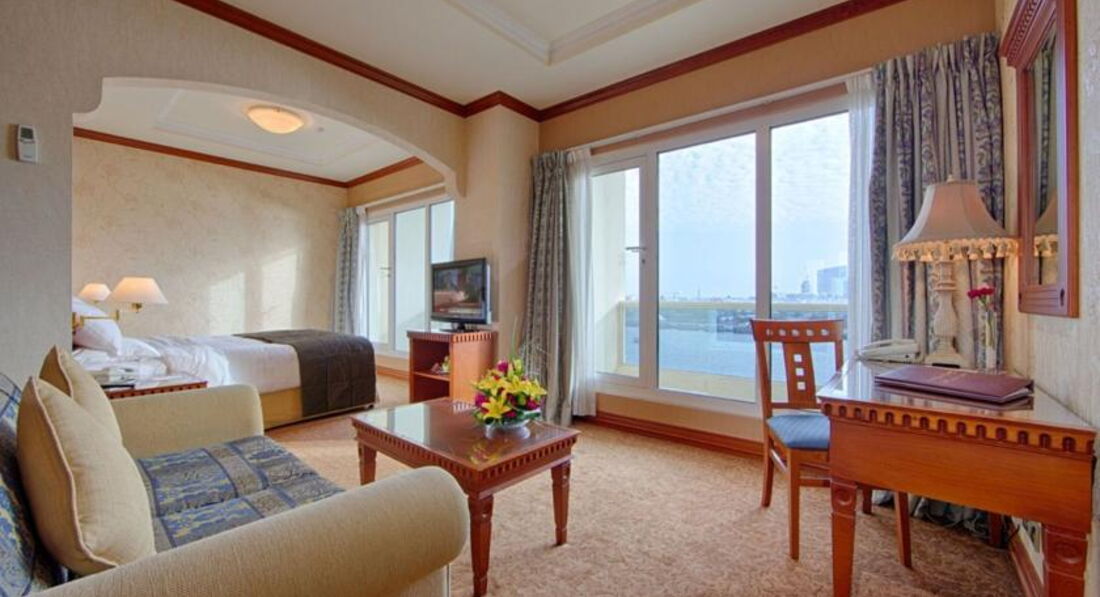 Отличный городской отель, трое взрослых - жили в большом 2-ух комнатном номере с видом на залив. НО! За вид платили заранее,и это на 100% стоит своих денег,вид просто завораживает!!!панорама потрясающая,особенно вечером,так что настоятельно рекомендую не жадничать,тем более что это 100 - 150$ погоды вам не сделают,иначе будете жить с видом на задний двор или соседнюю стену. Питание- достойное: завтрак стандартный - выбор неплохой,сытно,отличный кофе из кофемашины и свежайщая разнообразная выпечка. В этом отеле однозначно стоит брать полупансион - с обедом - готовят просто отлично,с душой!понравилось,что повар часто выходит в зал и интересуется,все ли было вкусно - это очень приятно. Прекрасные салаты - что для шведского стола редкость,как правило это нечно странное и не особо сочетающееся по вкусу,но тут - вкуснейшие,необычные,постоянное разные,я даже у повара выпросила пару рецептиков)) Хороший выбор рыбных и мясных блюд - приготовлено идеально,разнообразные гарниры. Блюда моментально пополняются по мере необходимости. Хорошие дессерты. В номере,лично у нас,убирали каждый день - и качественно,обувь аккуратно поставят,вещи - аккуратно свернут,косметику сложат аккуратно,если валяется) хотя чаевые хоть и оставляли,но не каждый день. Номер был с хорошей добротной мебелью,с белоснежным бельем. В номере мини-бар,чайник и чай/кофе/вода бесплатно. На ужин в основном ходили в Golden fork - я всегда брала морепродукты-гриль - обалденные,попробуйте именно там!Большая хорошая полция на одного человека,для двух мало - свежайшие и приготовлены именно так как надо,не пересушены. На мой взгляд район Дейра - не самый удачный,далековато ездить до центра,и очень много выходцев из Индии,Ирана и Пакистана. Что касается пляжа - каждый день был трансфер на пляж,на который нужно записываться с ВЕЧЕРА! все четко и по времени,в 9.00 на пляж,в 13.00 - обратно,оптимально по времени,после на обед и потом в центр гулять или на экскурсии. Полотенца выдают на ресепшн,после пляжа сдаете - с утра берете чистые. В общем и целом - отель рекомендую,весьма достойно за свои деньги!!!