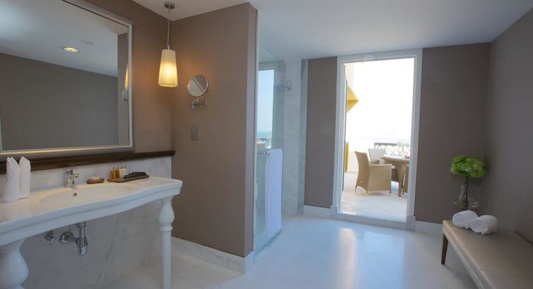 9 Junior Suite (78 м2, 2 спальні, вітальня, є міжкімнатні двері, з видом на море, тераса (шезлонги та парасольки), 2 ліжка king-size, макс. 4+2 чол., 3 ванні кімнати: душова кабіна та ванна )