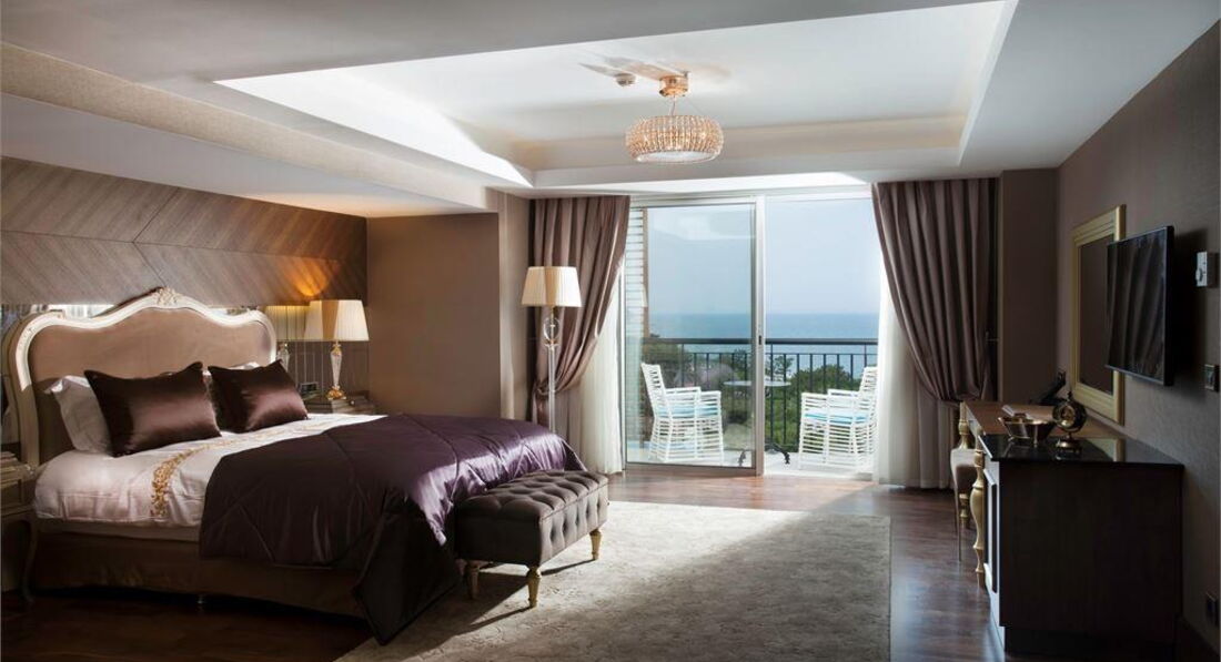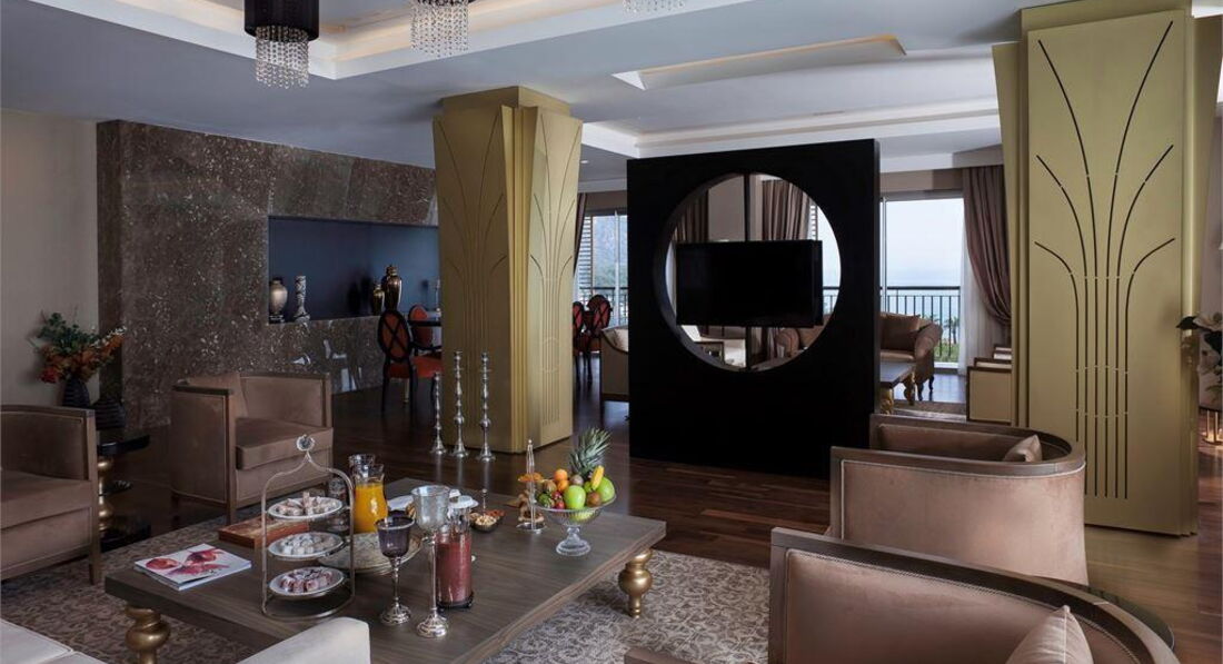 1 President Suite (425 м2) 4 спальні, вітальня, зал, розділені дверима, м'які меблі, 6 ТБ, 5 ванних кімнат, 2 сауни, тераса 156 м2, макс. 10 чол.