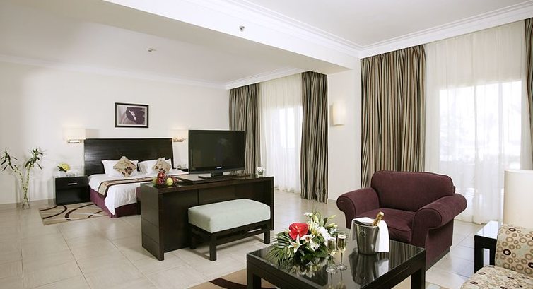 • Deluxe room (50 м2) : 2 роздільні ліжка або 1 двоспальне, міні бар (охолоджувальні напої та пиво безкоштовно, поповнюється щодня), 32” LCD - телевізор, пряма телефонна лінія, фен, центральний кондиціонер (працює на охолодження або обігрів в залежності) від сезону), набір для приготування чаю та кави, сейф. Номер має вітальню зі зручним диваном, балконом або терасою, видом на сад або басейн. Мінімальне розміщення: 1 дорослий, максимальне розміщення: 3 дорослих або 2 дорослих та 2 дитини;