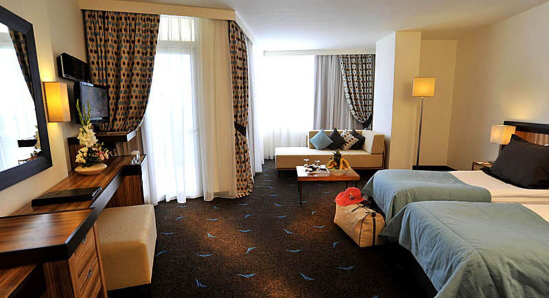 Розташування: готель знаходиться на самому березі моря, в курортному селищі Лара, в 12 км від центру Анталії і в 8 км від аеропорту Анталія.