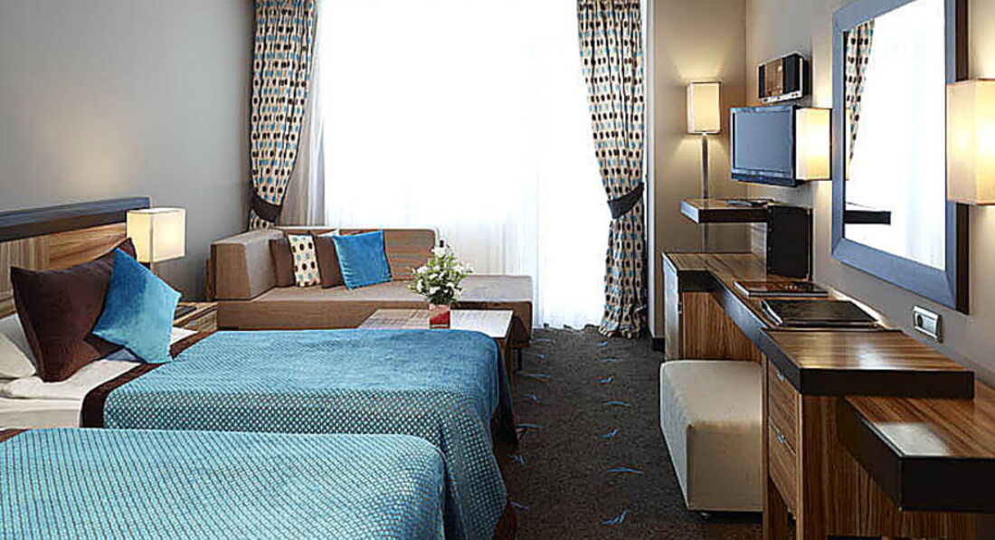 Номер чистый,мини бар пополнен, фирменные тапочки,халаты.К номеру и обслуживанию номеров претензий нет .Отдельное спасибо работнице (жаль не знаем ее имени) которая убирала 2 этаж корпуса C ,спасибо ей за живые цветы ,лебедей и сердца. Можно много говорить о питании низкий поклон шеф повару, питание было разнообразным , эту тему можно развивать, развивать и развивать мы ели : морепродукты,суши,различные блюда из мяса,множество видов сыров и колбас ну и конечно же турецкие десерты и огромное количество фруктов на любой вкус.Вечерами в барах можно было порадовать себя различными напитками от кофе с белисом до коктеля длинный остров . Теперь поговорим о территории отеля :территория просторная ,ухоженая для желающих отдохнуть тихая и спокойная релакс зона(сам пару раз спал).Чистый бассеины и девушки на роликах которые принимают заказы и 1 час в день чистят ваши солнечные очки(всем отдыхающим на удивление). Поговорим о анимации ,в первые дни может показатся что ее нет в дневное время но это не так,есть территория где аниматоры занимаются спортивными развлечениями :аквааэробика,водное поло,состязания на воде,дарц,стрельба из лука,большой теннис (за деньги),пляжный волейбол и фишка сезона джамбер что особенно понравилось дочери .А теперь о вечерних представлениях за неделю пребывания в отеле мы увидели :китайский цирк ,шоу балет Тодес,народные танцы мира,кубинские танцы и начинающая звезда украинской эстрады.А сейчас о главном в 2014 году мы снова едем в этот отель, но не одни с нами едут еще две семьи ,наши друзья , мы надеемся что для нас и для наших друзей отдых пройдет на том же уровне, а может еще и лучше так, что ждите нашу большую шумную компанию 27 мая 2014 года.