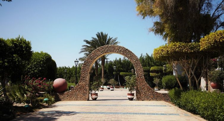 Территория отеля зеленая, достаточно большая, красивая. Номер поменяли сразу - хотя был один из дорогих, трещины на стенах и умывальниках обескуражили. Еда немного приелась за 2 недели, очень понравились финики и фреши.