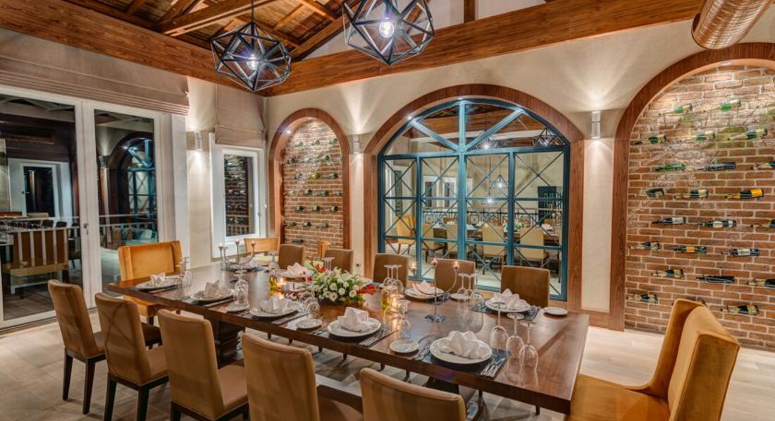 4 Superior Villa (300 м2, вид на сад) На нижньому поверсі – кімната для прислуги (односпальне ліжко) з ванною та туалетом, кухня, їдальня, туалет, тераса з шезлонгами, приватний басейн. На верхньому поверсі спальня з 2 односпальними ліжками та душовою/туалетом, спальня з 2 односпальними ліжками з душовою/туалетом, спальня з двоспальним ліжком, вбиральні, ванною, душовою/туалетом, тераса. 24 години на добу безкоштовний сервіс в номер, безкоштовно послуги Exclusive Club A'la cart ресторану, павільйону на пляжі, розпакування та укладання багажу, пральні, чистка взуття. Першочерговість при обслуговуванні в A'la cart ресторанах та VIP Lounge. ВІП Трансфер аеропорт-готель-аеропорт.