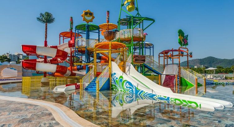 Для деток постарше водные горки. Отличная детская зона с лазалками, детскими аниматорами. Ребенка оставляли на 2-3 часа. И были спокойны что с ребенком ничего не случится. Ребенок тоже был очень доволен. Они там ресуют, лепят играют и т.д Детская площадка находится в так сказать сосновом лесу) Там всегда тенек. Лавочки столики для взрослых. Многие семьи приезжают сюда уже не один раз ради такой возможности чтоб и самим отдохнуть и ребенок был под присмотром. В остальном в отеле все на отлично. Очень богатый выбор еды. Отличные номера. Все на отличном уровне. Персонал работает четко. Очень приятные и вежливые люди. В общем все тут отлично мы теперь еще не однократно сюда приедем отдыхать!