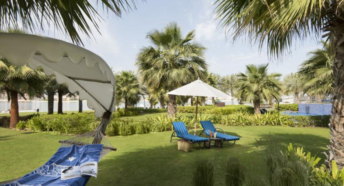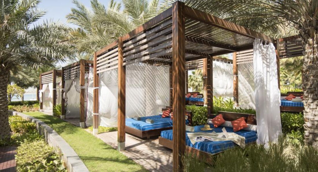 Территория отеля достаточно большая, ухоженная, можно сказать, что очень красивая, одним словом - глаз радовала. Помимо обычных одноместных шезлонгов с матрасами, было много больших двухместных шезлонгов с шикарными матрасами и навесами, выбирай любой, места тоже всегда были свободные (в этом определённый плюс отдыха в Дубае летом, мы любим, когда людей немного).