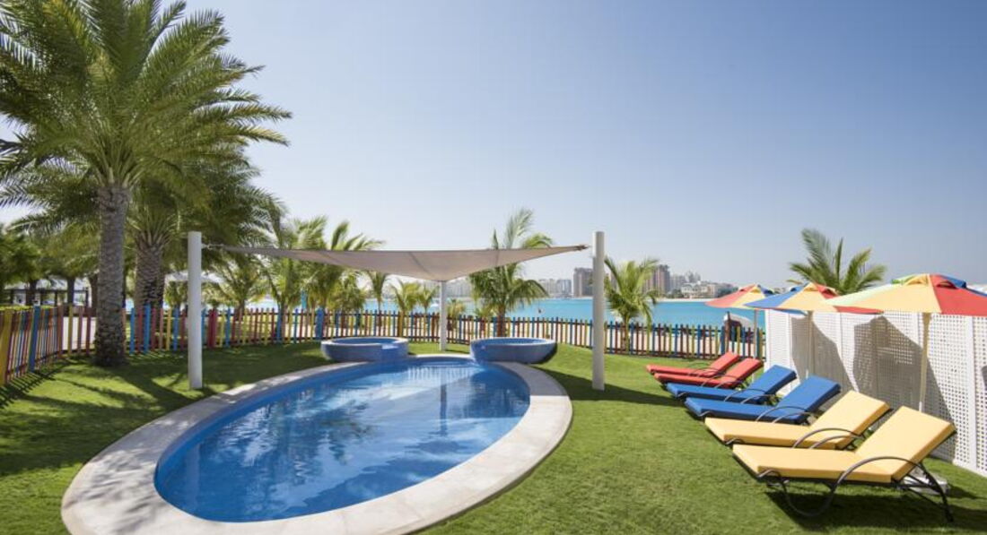 Пляж. Хороший удобный, пологий вход в воду что удобно с маленькими детьми. Водо теплая и спокойная. Одно но песок с ракушками. С пляжа красивый вид на небоскребы. Всегда есть свободные лежаки. Полотенца можно менять несколько раз в день и выдают без карточек. Заселение и номер. При заселении берут депозит в долларах а вернут в дерхамах. Номер просторный двух спалка и односпалка для ребенка. В ванной две раковины. Сама ванная и сам номер просторные места много. Плюс ванная. Уборка качественная все меняют пополняют вовремя. Пол литра водички на человека ежедневно. Расположен отель далеко от города ехать на такси минут тридцать. Анимация слабенькая д ля детей клуб но только с четырех лет либо с присутствием родителей. Есть хороший детский бассейн. Зато в отеле есть русскоговорящий персонал и отношение к гостям и обслуживание просто превосходное. На территории отеля все стоит очень дорого и по этому берите полный пансион. Так выйдет дешевле и еще советик покупайте туры в интернете мы врядли бы себе позволили этот отель если бы не купили через интернет сэкономили процентов двадцать. Нашли самую дешевую цену у агента по имени дмитрия кукина кому нужно ищите его через поиск друзей в контакте по имени. В целом готовят вкусно большое разнообразие. Очень понравилось барбекю. Все выложено на льду выбираешь самостоятельно что тебе пожарить. Деток тоже есть чем накормить. Отель рекомендую для отдыха с детьми. В зрослым несколько бассейнов в том чесле длинный чтоб поплавать с нагрузкой и хороший спортзал но и по стандарту. Ставлю отлично!