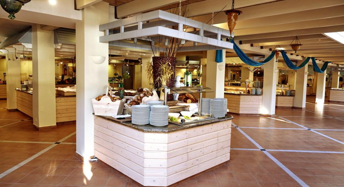 • у ресторані Main у курортному готелі накривається чудовий "шведський стіл" з великим вибором страв та напоїв