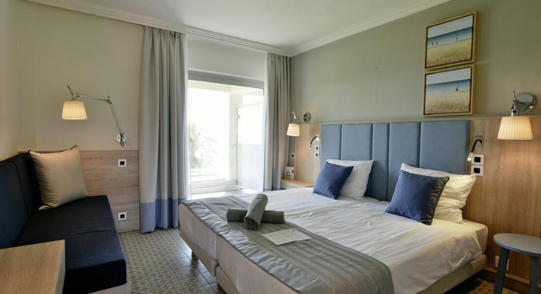 • standard room direct SV (прямий вид на море, розташовані в основному будівлі та в додаткових корпусах, осн. ліжко – 2 односпальні, дод. – односпальне ліжко або кушетка, макс. 3 чол., 24 м2)