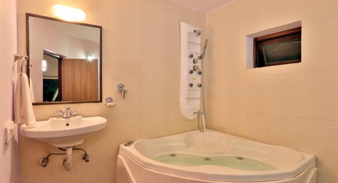 РАЗМЕЩЕНИЕ. Три корпуса 1 и 2-этажные на 26 номеров. Номера Deluxe от Standart отличаются немногим: чуть большей площади, коврик на полу, вид на море. В целом все номера просторные, светлые, с кроватями king size (доп. место для 3-го человека - европейская раскладушка - удобная, хоть и скрипит). Мини-холодильник, чайник, кружки/стаканы и чайный набор. Шкаф для одежды с ящиком на ключе (это сейф - убирайте в него деньги и ценные вещи, и все останется в сохранности). Плазменный телевизор с индийским кабельным и каналом Fashion. Ванные комнаты очень просторные: ванна-джакузи, душ (напор отличный), вся сантехника исправна. Вода нагревается с помощью водонагревателя за 5 минут (включается клавишей у розетки). Через открытую форточку может приходить маленькая живность - у нас весь отпуск жил лягушонок и ящерка (не нужно делать из этого паники, они никого не съедят и не укусят). Все электричество работает от вставного ключа у двери. Кондиционер современный. Wi Fi бесплатный на рецепции и в ресторане, но благодаря маленькой территории ловится и в номерах.