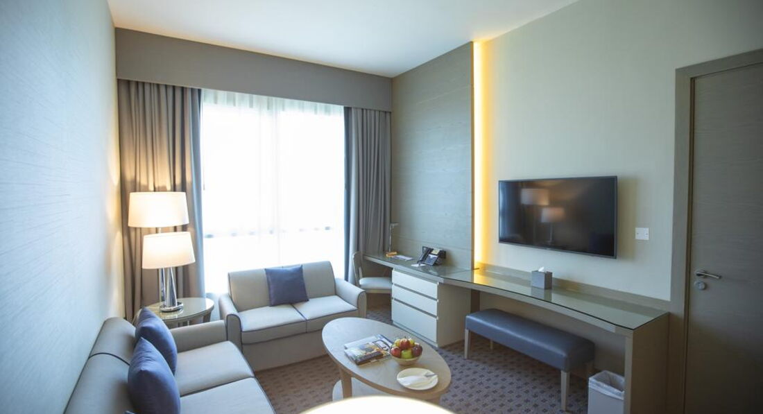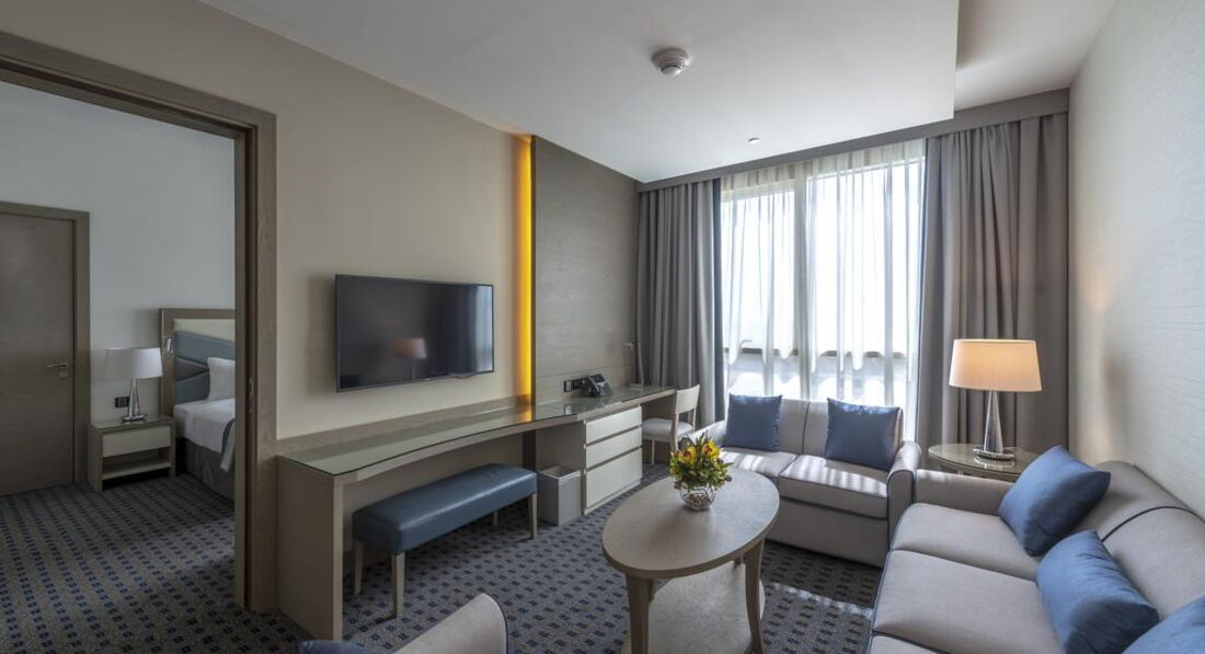 • 4 Premium King Suite – площа 57 кв.м., максимальне розміщення 2+1, дві кімнати: вітальня, спальня, міжкімнатні двері, ліжко King або 2 ліжка Twin, ванна кімната, балкон не