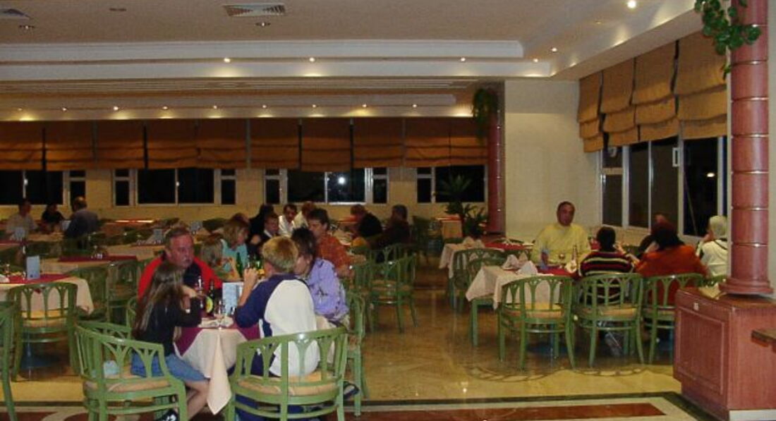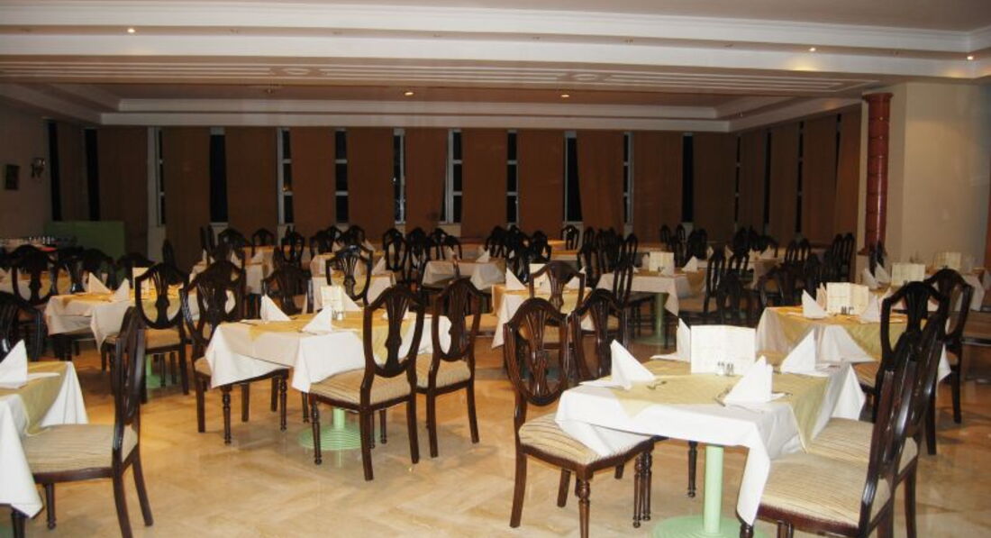 У головному ресторані – шведський стіл. З 7:00-10:00 – сніданок; з 13:00-15:00 – обід; з 19:00-22:00 – вечеря. Ресторан на 250-280 осіб. Ресторан-бар на пляжі: відкритий з 10:00 до 17:00, закуски з 10:00-12:00; Coffee Shop: годинник роботи з 10:00-22:00, закуски з 17:00-19:00. Бари пропонують прохолодні напої, чай, каву, вино місцевого виробництва (всі напої подаються у склянках).