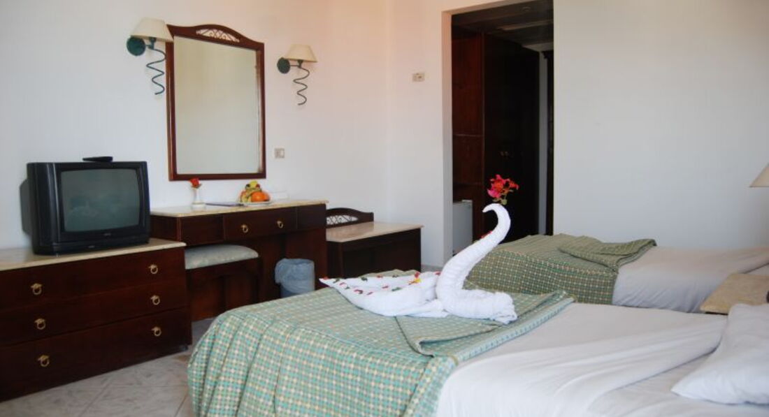 Отель грязный, обслуживание- хамское. Сперва нас поселили в номер свидом на бассейн ( если можно так сказать на это корыто с водой ) , но мы попросили чтобы нас переселили в номер с видом на море за что с нас попросили денег, мы сказали ,что поменяем деньги и дадим но никто им так денег и не дал. Номер убогий , старая мебель, телевизор не показывает, в холодильнике не закрывалась полностью дверца, из косметики только два маленьких кусочка мыла. На територии два маленьких бассейна без подогрева( мы ездили в феврале поэтому вода в море была прохладная и я думала поплавать в бассейне , но там вода была ещё холоднее чем в море ). Пляж через дорогу, лежаки старые, полотенца которые выдавали на пляже- грязные ( у меня складывалось впечатление что полотенца не стирались уже месяц, а теже полотенца что пользовались вчера выдавались на следующий день) напитки как в отеле так и на пляже наливали в пластиковые стаканчик. Еда поначалу показалась хорошей но потом мы поняли, что меню одно и то самое каждый день и уже дней через пять надоело есть одно и тоже. Вечером вообще делать нечего, посте ужина можно идти и ложиться спать. Категорически НЕ РЕКОМЕНДУЮ этот отель. Там нет никаких 4 звёзд, там где- то 2-3* .
