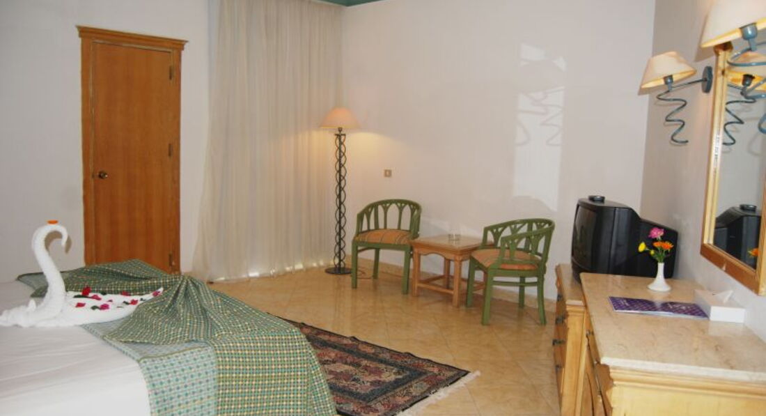 В целом отель не плохой. Меня заселили в номер с видом на бассейн. Номер довольно большой, комаров клопов и прочей живности нет, потому что каждый день они делают отбработку. Всё работало, ничего не ломалось. В номере есть удобная мебель, кондиционер, ТВ, всегда чистые полотенца, ежедневная уборка, лепили фигурки из полотенец, как и везде. Еда вполне приличная. Готовили мясо, рыбу, курицу, гарниры, супы, салаты, овощи, фрукты и различная выпечка и пудинги. Очень понравились пирожные и торты. Пляж не большой, расположен через дорогу, но очень близко. Есть зонтики и шезлонги. Море чистое, в море плавают очень красивые рыбки и есть кораллы. Отличная возможность поплавать с маской. Рядом с отелем есть множество магазинов. Там можно приобрести сувениры и все необходимое. Я ехала с целью искупаться в море, отдохнуть и съездить на экскурсию, очень хотелось побывать в Луксоре. Экскурсию заказала в местной компании ТабаТур http://tabatour.com/. Понравилась ценовая политика и интересная экскурсионная программа. Я посетила знамениты Карнакский храм, затем знаменитые Колоссы Мемнона: две 20-метровые статуи из камня, которые некогда охраняли вход в храм Аменхотепа III. Также, я смогла увидеть храм единственной женщины фараона, царицы Хатшепсут. Еще во время экскурсии, я постетила парфюмерную фабрику и фабрики папируса и алебастра. Время провела очень хорошо, отдыхом довольно, всем удачи!