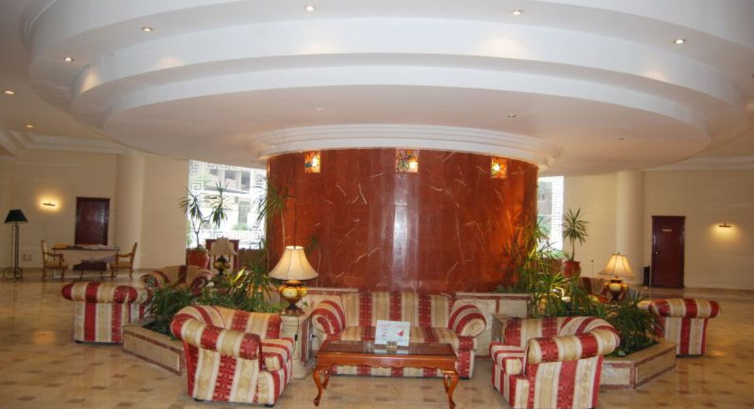 Сам отель убогий. Вроде бы его и моют постоянно. Но то, чем моют - пугает. Какая-то серая вода. Они ее разливают по полу и трут. Каждое утро протирают перила керосином Вонь стоит еще та. Крыша стеклянная наполовину разбита. Лифты застревают постоянно. Или просто не работают.