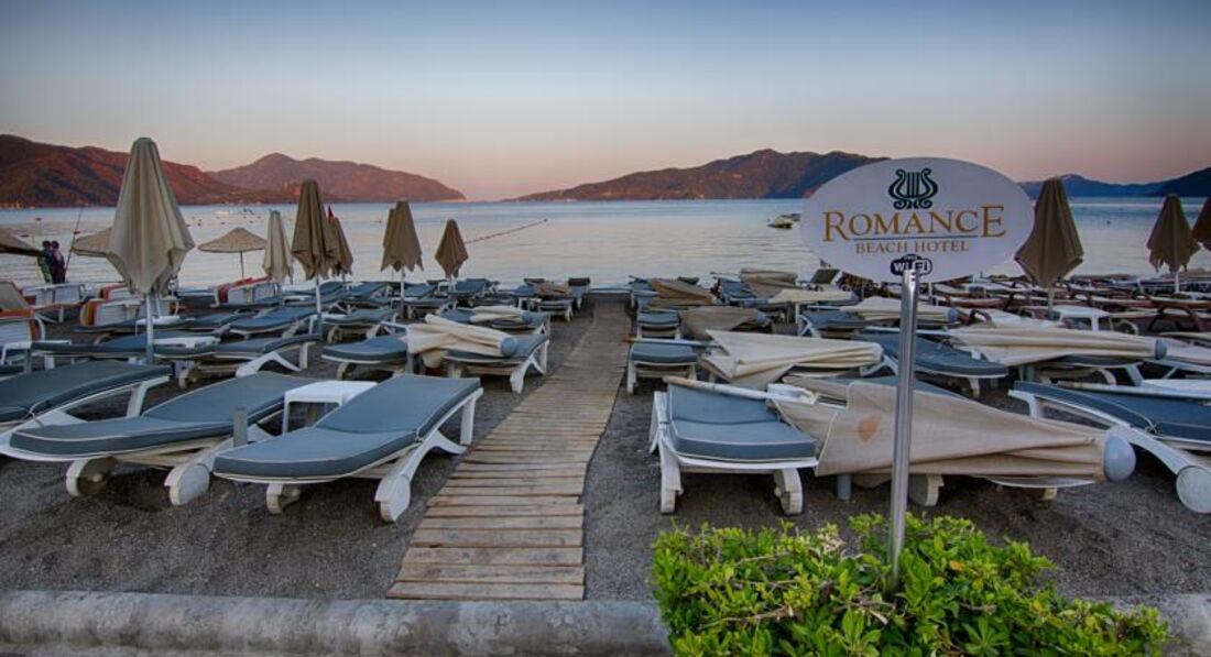 Выбирая отель не перепутайте! Почти все туристы которые были с нами в период нашего отдыха, тоже были дезинформированы!!!! Их два - Романс клаб и Романс бич!!!! И когда бронируешь КЛАБ, то по отзывам попадаешь сюда -на сайт отеля Романс БИЧ, где всё замечательно!!!!!!Так вот клаб раньше работал как апартаменты и только с этого года отель по системе всё включено! Буду обьективна!!!! Размещение для тройки вполне нормальное и отель расположен очень удобно, НО пляж отеля бич и лежаки были общие, но их очень мало и наши соотечественники бегали в 6 утра их занимать, так что в последний день отдыха было обьявлено, что бесплатно только для гостей Романс бич, остальные могут купив что то в баре или кафе занимать соседние места! Питание просто кошмар!!!!!! Нигде такого не видела! Дают только ОДНО горячее блюдо, например лежат рис, макароны и ножки куриные! ВСЁ!!! И их вам выдают порционно! Фрукты по одному виду, например утром резаные апельсины, в обед абрикосы или сливы, вечером арбуз. Мы женщины и конечно наедались, но это реально очень скудно! Раньше я никогда не придавала значение уборке, но когда войдя в номер обнаружила посреди комнаты два клока чёрных волос, а в туалете так и не убранный труп таракана, то просто вынуждена была обратиться на ресепшн, которого как такового и нет, просто будочка при входе! А! Пляжных полотенец тоже нет, хотя изначально в описании отеля они были (сейчас вижу, что внесли исправления) и мы ходили на пляж с отельными белыми! Я ехала в Турцию с подругами отметить свой день рождения и при бронировании отеля специально это указала, НО никто и не подумал хоть как то меня поздравить (тортик там или вина бутылочка), просто игнор! Была неприятно удивлена честно говоря! Конечно же на ужин нам пришлось идти в приличный ресторан! Кстати, обслуга питается вместе с гостями, если что и однажды во время так называемого полдника я лично видела, как бармен одним из первых набрал полную тарелку кексов и сел пить кофе! И много могу написать, если нужны подробности - пишите на электронку! А вот Романс Бич который прямо у моря очень милый, чистенький отельчик! Так что не перепутайте, друзья мои!!!!! Мармарис прекрасен, чист, уютен, экскурсии нас порадовали, но в ночлежку под названием Романс КЛАБ не рекомендую конечно же никому!!!!
