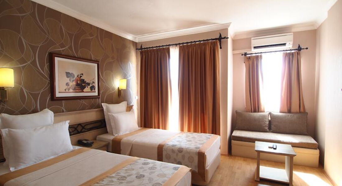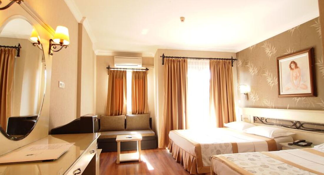 Приезжаю уже второй раз в этот отель! На этот раз поехали с подругой. Номер нам дали с балконом с видом на море, чему мы были очень рады! Номера чистые, уборку делали своевременно! Питание тоже понравилось, на твердую 4! Отель не большой, стоит на 1 линии, зато есть свой пляж - тоже плюс! Персонал тоже приятный, всегда улыбаются, если что нужно подсказать или чем помочь, сразу решают проблему! Русских в отеле было мало) но нам от этого не было хуже, в других отелях их слишком много))) Анимацией мы не интересовались, хотя при отеле вечером всегда приятная музыка) мы ходили на "bar street"-центр ночной жизни в Мармарисе))) Много отличных впечатлений! Отель оправдывает свою цену!