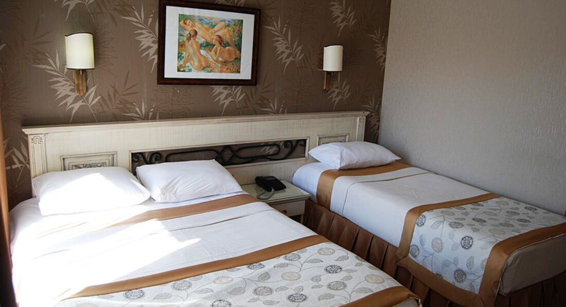 Номери в готелі відносно не погані, враховуючи що оновлення і ремонт були десь 2004 року ( чисто візуально) це можна судити по сантехніці та стані підлог і стін. Ліжка в номерах стандарт які ніби то двоспальні насправді є не більш як півторачка і то економ варіанту.