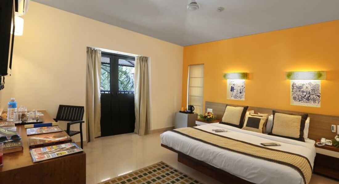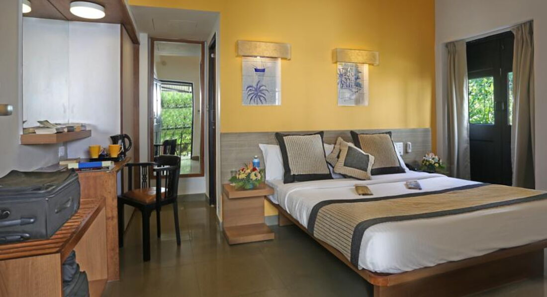 Много писать не буду, потому что нечего... Отель чистый, уютный, с хорошей зелёной территорией, в 5 минутах хотьбы от пляжа Бага (много местных отдыхающих и это "-", слишком назойливы и бесцеремонны). По пути много палаток с сувенирами, "супер-маркетов", баров и клубов (если ЭТО можно назвать клубами)!!! В отеле одни европейцы, и те пенсионного возраста, с раннего утра оккупирующие бассейн - скучно... Обслуживание на твёрдую 4-ку. На завтрак ходила пару раз - омлет есть можно...))) ужинали в шейке на пляже (вкусно и дёшево)! Номер маленький, но всё необходимое есть (кондиционер, на потолке вентилятор, холодильник, сейф). Уборка и смена полотенец ежедневная. В общем, отель хорош для спокойного отдыха, чего от ГОА я не ожидала... и не хотела!