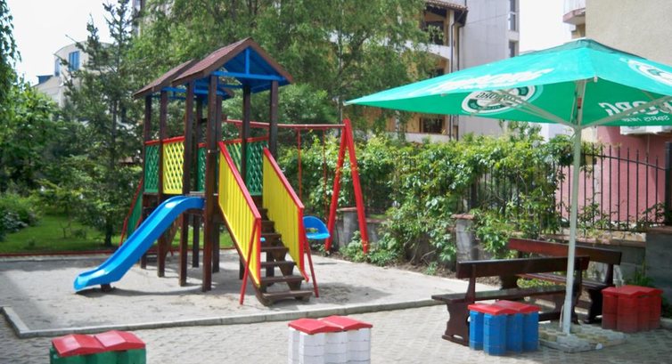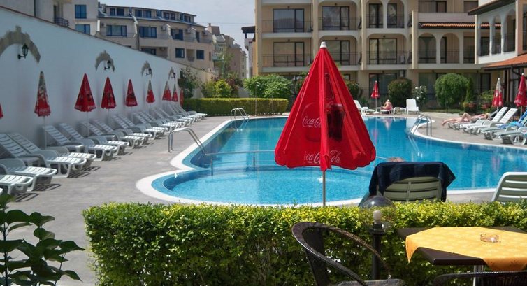 отель находится на въезде в солнечный берег, до центра добраться легко и быстро, зато не шумно вечером. Уборка каждый день(если конечно номер свободен), персонал приветливый, дружелюбный. В отеле много апартаментов выкуплено русскими, но от этого он только лучше, оборудована хорошо детская площадка. До Несебра 10 минут пешком. До пляжа 10-15 минут пешком. Сейф предоставляют за дополнительную плату-за две недели отдыха заплатили около 60-70 долларов. Пляж песчаный, с пологим входом. Много кафе рядом, где очень вкусно готовят.В номере была стиральная машина, невысокий столик кухонный и 2 пуфика, утюг, сушилка, два балкона, на балконе 2 стула и столик.В некоторых номерах есть кухонный высокий стол и стулья, но зато нет стиральной машины. Отель очень понравился.