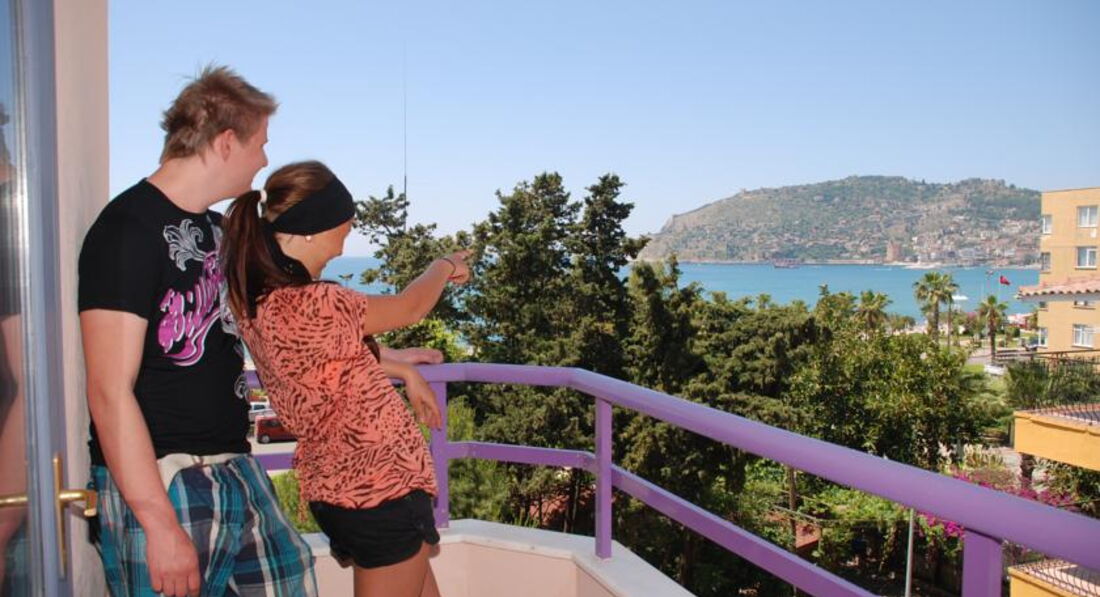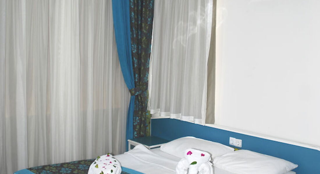 Добрый день! Хотелось бы тоже поделиться проведённым отпуском в этом отеле. Когда покупала для нас с мужем путевку,то особых иллюзий от отеля не питала, всё-таки три звезды. При прибытии разместили сразу, достался приличный номер на третьем этаже.Кровать удобная,маленький уютный балкончик и единственное огорчение: не работал фен.Уборку в номере за 10 дней не делали не разу, но я в подсобке нашла чистое бельё и полотенца и поменяла сама. В отеле почти все постояльцы из России, было много молодежи,вечером в баре можно было непринужденно пить вино, напитки и общаться. Море в шаговой доступности,вход хороший. Особая благодарность смотрящему за лежаками Йлмазу,который подружился с нами и потом давал нам лежаки бесплатно.Наш гид Ширван произвел хорошее впечатление, отлично говорит по-русски, всегда интересовался, как у нас дела. Понравилось то, что отель расположен не далеко от центра,ходили пешком и в порт и на местные рынки. Питание нормальное,правда мало мяса, но зато было много свежей зелени и овощей. Очередь в столовой немного раздражала. Рекомендую отель тем, кто не сноб, хочет не только купаться, но и погулять по улочкам Алании.