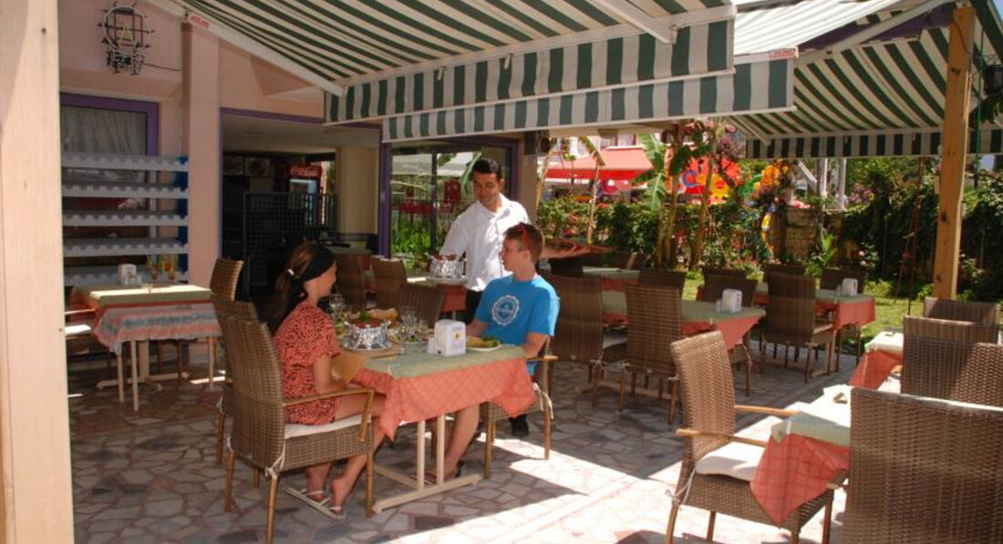 Хорошее питание,все свежее.Вежливый,отзывчивый персонал.Море рядом.Очень удобное расположение,в центре города,рядом много кафе и магазинов.Практически каждый день предлагают поездки в "Summer Garden" ( это отличный ночной клуб в 10 км от Алании),"Робин Гуд" ( это рядом,но лично мне саммер больше нравится), или Демчай (это плавучие столы-ресторан на горной реке, великолепно кормят,искупаться можно в ледяной и кристально чистой горной реке,лежаки и гамак над водой).Территория маленькая,но очень уютная,все перезнакомились в маленьком отеле.Всегда пахло розами.Очень приятно.