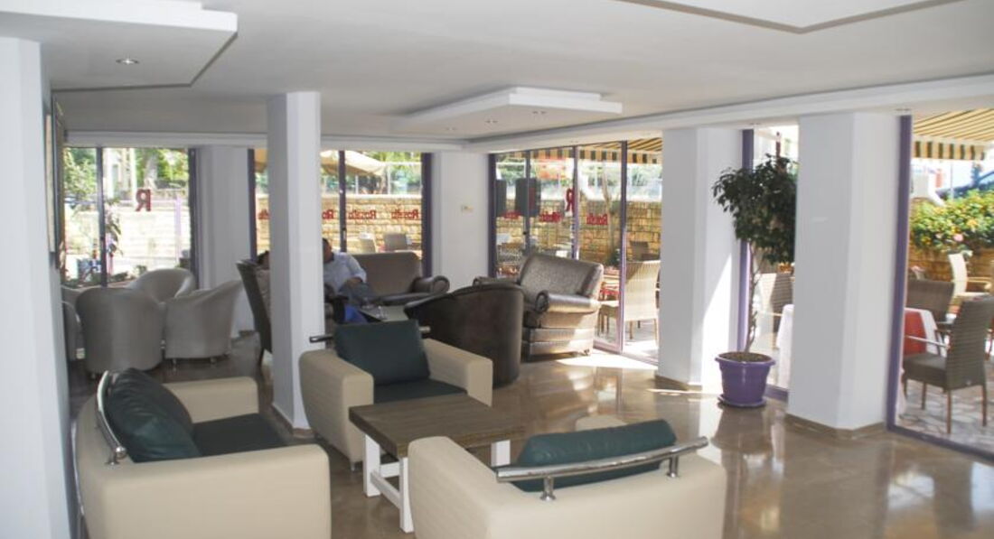 Только вернулась из отпуска......Отель встретил очень доброжелательно и гостепреимно.Все соответствовало 3м звездам,т.к. в Алании не первый раз,и всегда беру трехзвездочные отели.Номер достался в главном корпусе,с видом на море.Удивило отсутствие телевизора в номере,оказалось,что их вообще нет в отеле.Но вообщем это не напрягало....меньше смотришь-лучше спишь...отдохнула от него,от политических новостей.Остальное все работало;фен,кондей,местный телефон.Расположение прекрасное,до центра 20 минут(до порта),до моря 5 минут,заход в море хороший,зонтики и шезлонги по 2 доллара в день,почти не брала,загорала просто на полотенце.Персоналу отдельное спасибо,все вежливы и тактичны,очень стараются угодить всем туристам,а вечером поднять настроение,хорошо подобранной музыкой в баре,всех приглашают танцевать.Туристы танцевали каждый день с удовольствием,анимации в отеле нет,но этого хватало....Питание хорошее,мяса не много,но от голода никто не опух...Отдых прошел замечательно,впечатления отличные.Отель рекомендую тем,кого больше волнует не комфорт,а шопинг,развлечения,экскурсии.Про экскурсии...брала у Джамала,алания-сити,хамам и джип сафари,все понравилось,особенно джип,было очень весело.Спасибо,Розелла,за гостепреимство!Спасибо моей веселой компании!!!!
