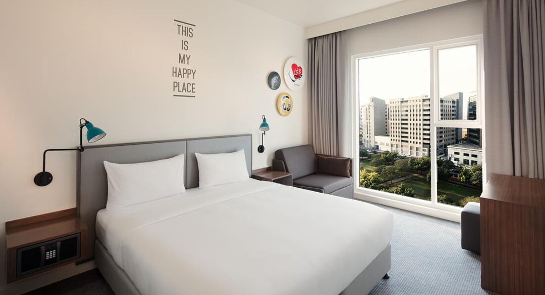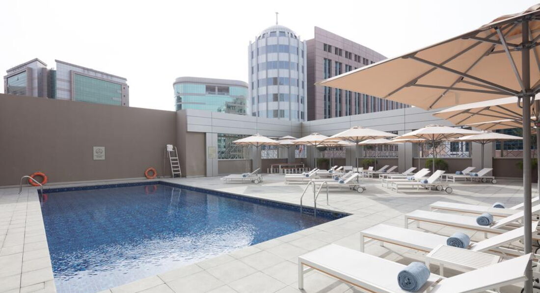 Територія та послуги: • Ресторан The Daily (інтернаціональна кухня, 06:30 – 23:30) • Відкритий басейн площею 72 кв.м., температура води контролюється • 3 Конференц-зали (платно) • Обмін валюти • Супермаркет • Паркування (безкоштовно) • Паркування велосипедів (безкоштовно) • Пральня самообслуговування • Wi-Fi на всій території готелю Розваги та спорт: • Фітнес-центр (безкоштовно) • Тренажерний зал (безкоштовно) Для дітей: • Дитячі стільці у ресторані • Дитяче ліжечко (за запитом, безкоштовно) Живлення: • Сніданки Пляж: Найближчий платний пляж Аль Мамзар знаходиться в 10 км. від готелю, трансфер від готелю не передбачено. До оплати приймаються кредитні картки: Visa, MasterCard, American Express, CUP, Diners.